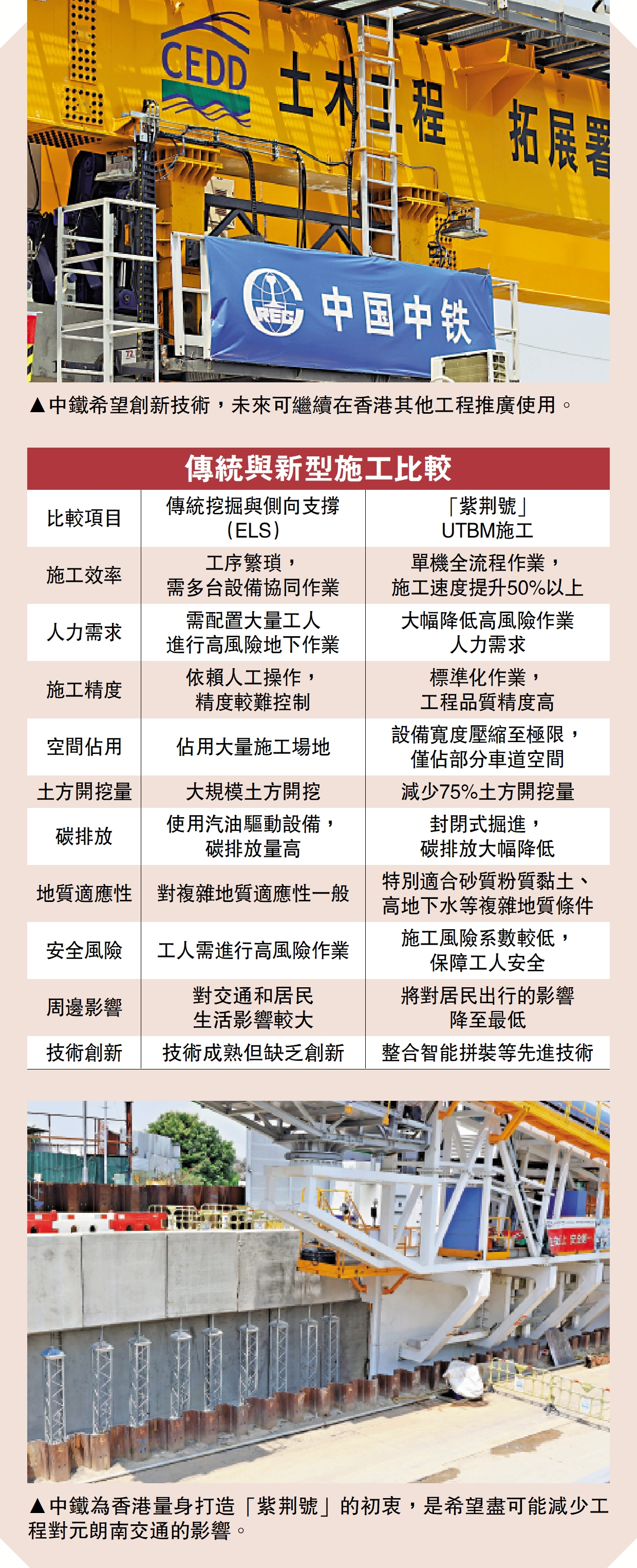 右圖:中鐵的創新技術在港示範,獲海外市場青睞,為中國建造技術走向國際開闢了新途徑。