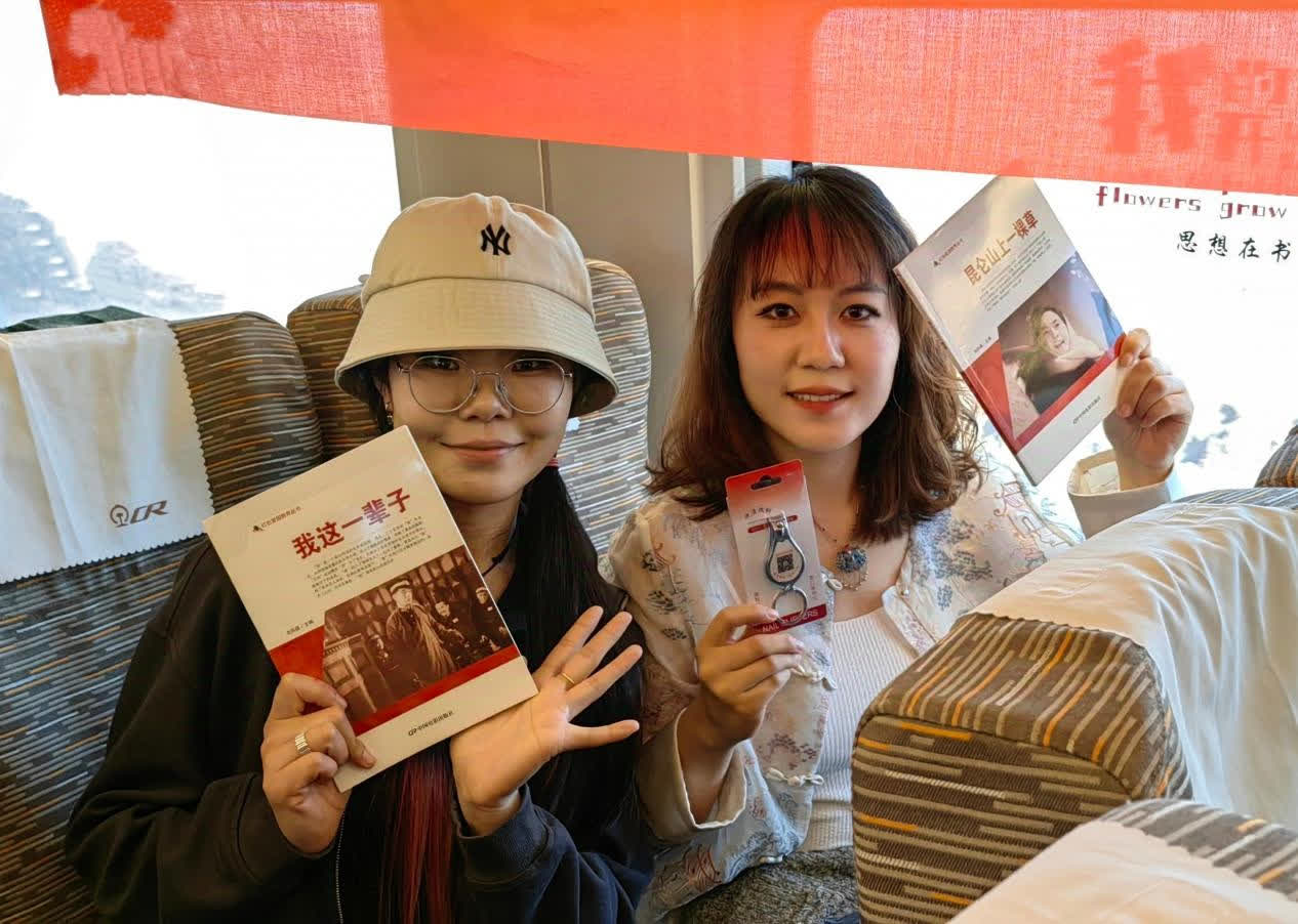 從包頭到北京的乘客丁帆伸說:「第一次在高鐵上參加這樣的活動,太驚喜了!一路聽歌、答題、品書香,旅途都變得更有意義了。」