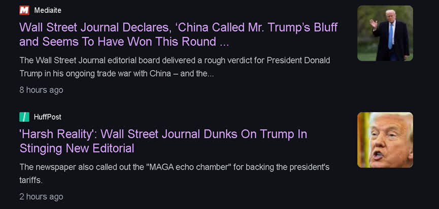 這篇社評還認為,中國此次對美國政府的強力反擊,說明中國已經「看穿了」白宮的「虛張聲勢」。而且中國從關稅反擊到管控稀土出口再到對美國產品和企業的限制,還有中國呼籲其他各國一同反制美國的喊話,都產生了效果。