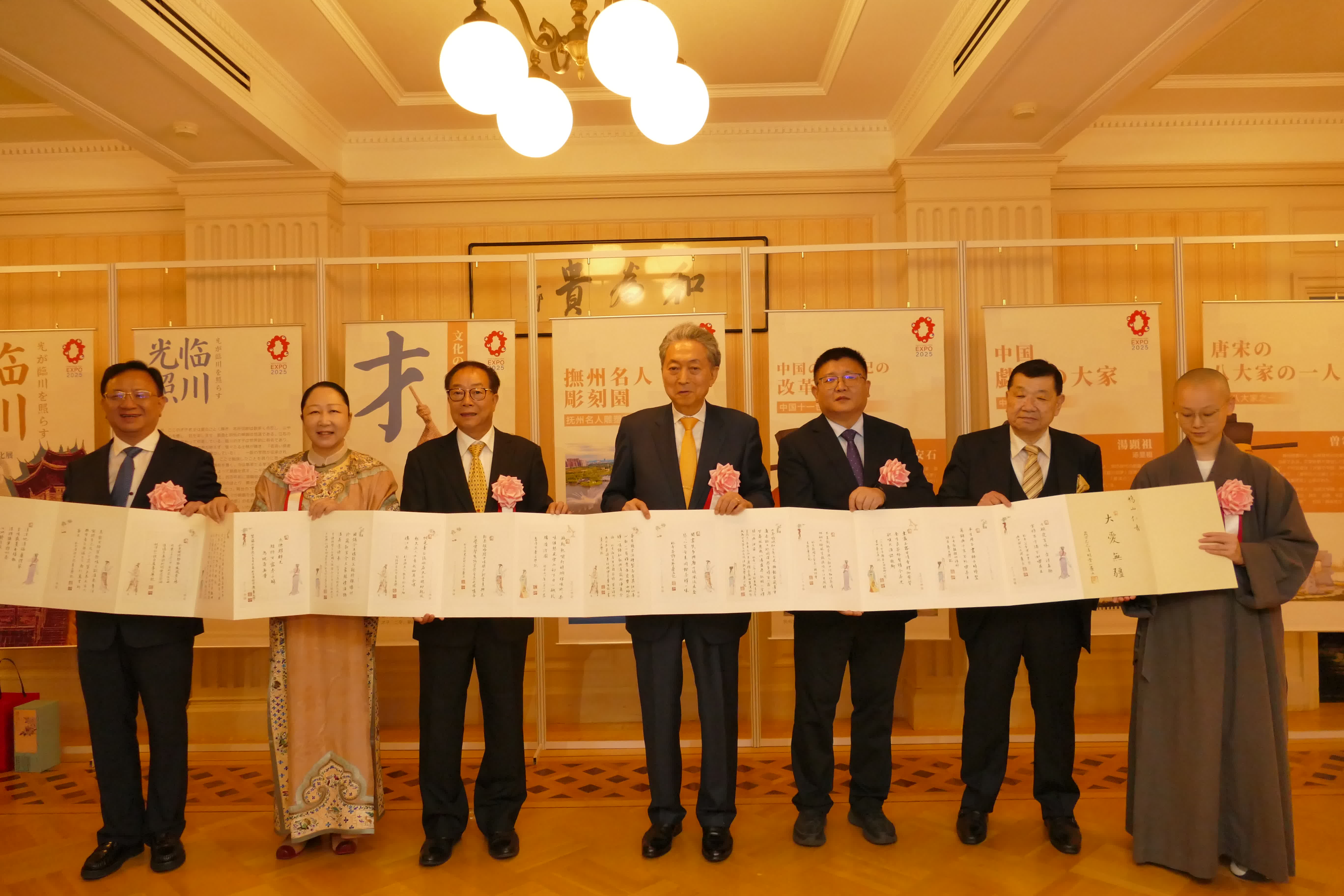 22日,「遇見江西」臨川文化展在日本東京鳩山會館啟幕。日本前首相鳩山由紀夫在致辭時表示,非常歡迎展覽在鳩山會館舉行,讓他與中國的距離縮近,也讓他與臨川更有親近感。