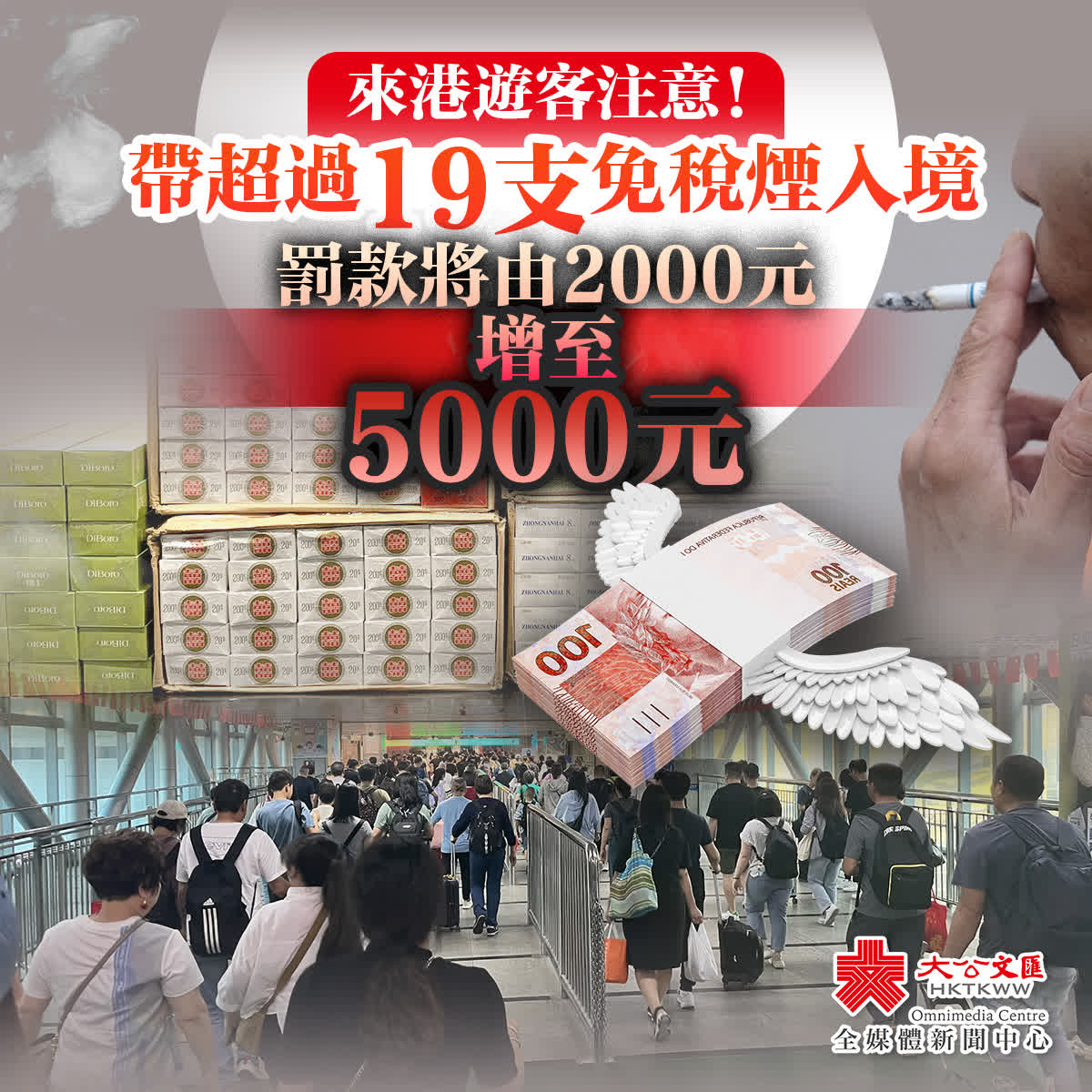 《條例草案》提出多項控煙措施,包括自明年1月起,若任何人攜帶多於19支免稅煙入境,定額罰款將由2000元增至5000元。同時加入完稅煙識別標籤、提高走私私煙罰則、擴大禁煙區、禁止管有另類吸煙產品等。