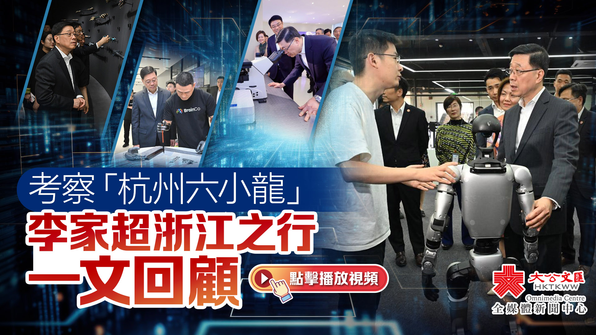 李家超表示,歡迎「杭州六小龍」來港落戶或拓展業務,期待未來浙港兩地企業加強創科合作、優勢互補,攜手推出更多具有創新創意的「爆款」項目。