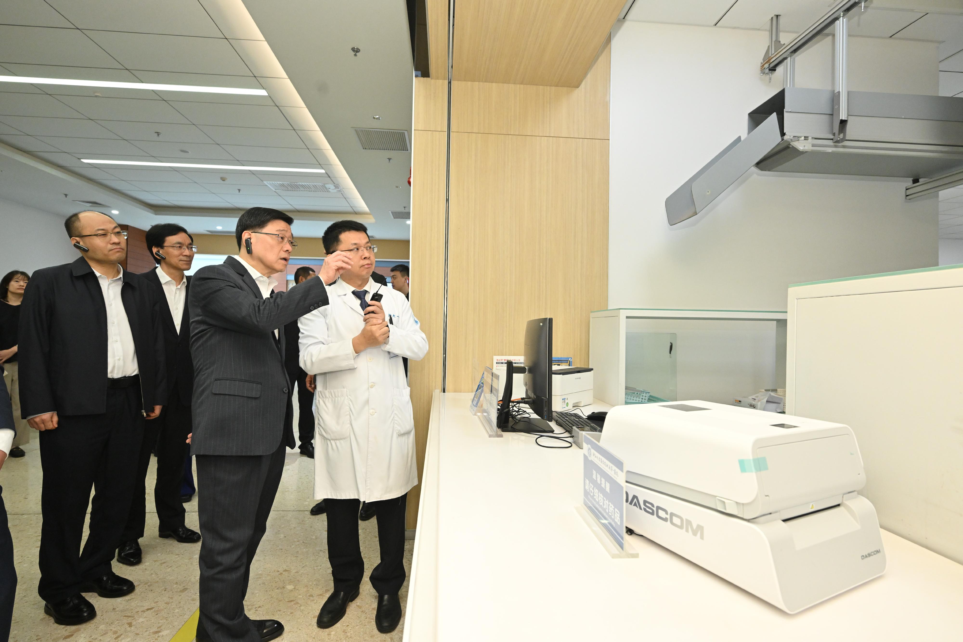 李家超了解智慧醫院運作和應用醫療科技最新發展,包括在研發全新治療惡性血液病方案的成果,以及利用人工智能技術作精準臨床診斷。李家超詢問了醫務人員開展多學科聯合會診(MDT)、通過互聯網提供遠程醫療服務、運用智慧軌道物流小車和機器人等先進科技系統重塑醫療物流模式等方面的具體情況。並重點考察了浙大一院依託人工智能前沿技術,自主開發啟元重症大模型和病理AI大模型,在提高醫務人員工作效率和臨床診斷精準度等方面所取得的突破性進展。