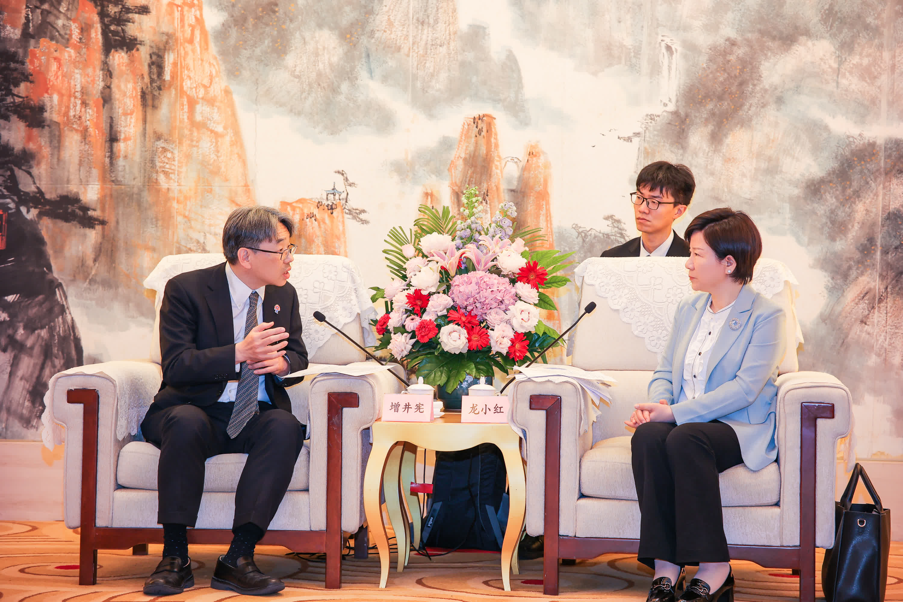 湖北省商務廳廳長龍小紅會見代表團一行,詳細介紹了湖北省近年來的經濟發展成果。她指出,湖北着力打造一流的營商環境,歡迎日本企業家積極推介、為湖北外向型經濟發展做出積極貢獻。湖北省商務廳副廳長李軍與商務廳外資處處長朱延琳出席會見;天風國際證券集團有限公司行政總裁鄒傳參加會見。