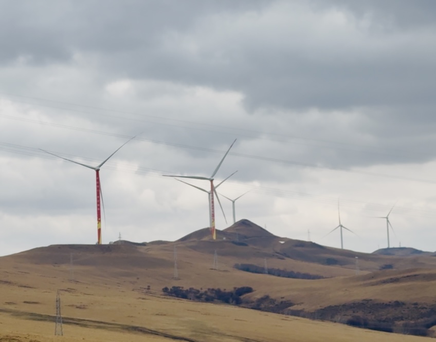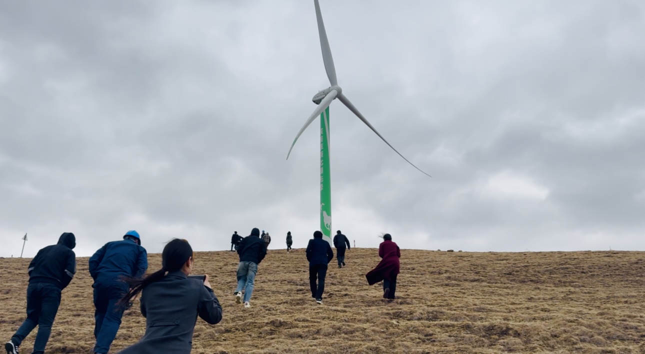 (大公文匯網 記者 李暢)四月下旬的內蒙古春潮湧動,從烏蘭浩特市驅車一路向西,伴隨着一望無垠的草原風光和近三個小時的顛簸,記者跟隨國務院國資委新聞中心組織的「走進新國企·中廣核青山綠水行」媒體採訪團,來到了位於興安盟科爾沁右翼前旗境內的核碩風電場,這是中廣核興安盟300萬千瓦革命老區風電項目之一。在這裏,701颱風電機組每年生產上百億度綠電,通過特高壓直流線路源源不斷地輸往山東,為齊魯大地注入綠色動能。