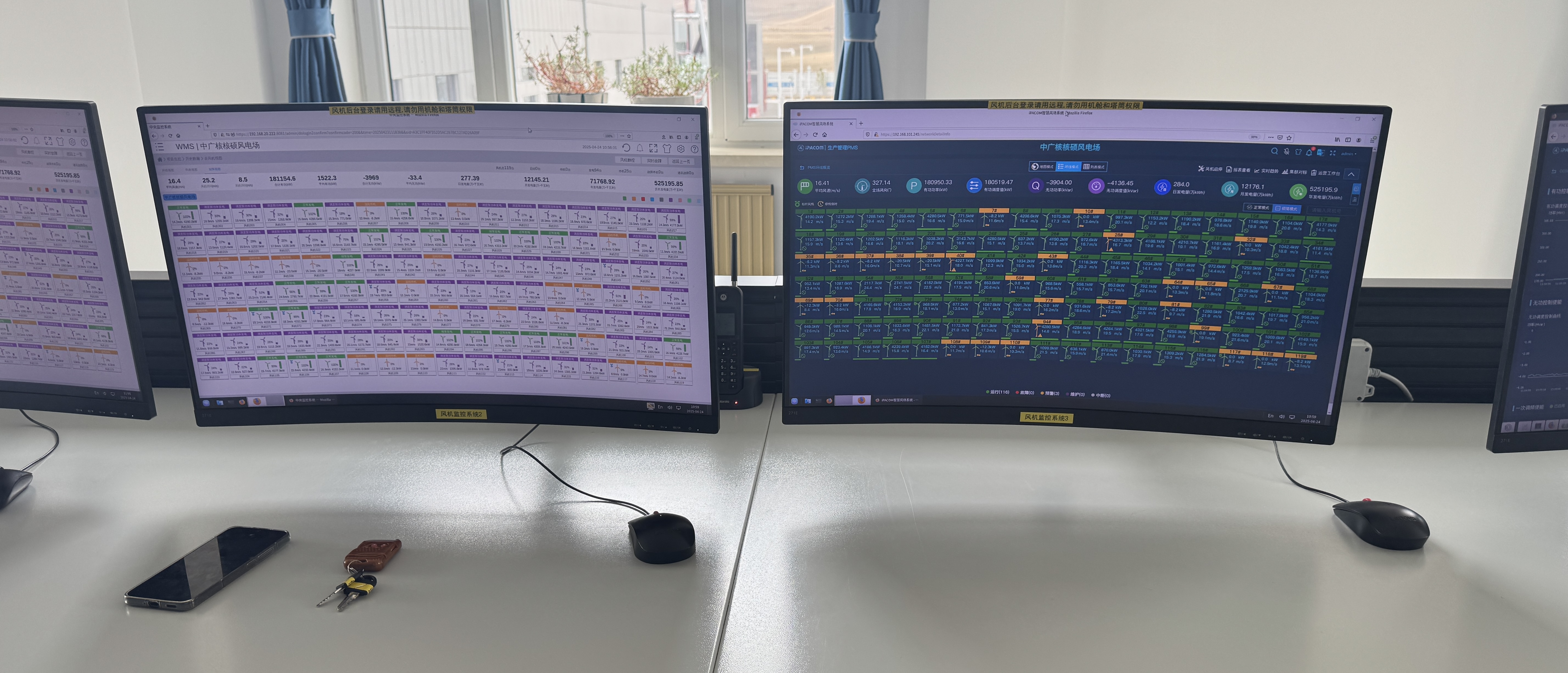 「風機總119台、平均風速16.7m/s、預計當日發電量可達1000萬千瓦時……」走進風電場的中控室,記者發現這裏還有一台台的數字化控制系統,猶如「智慧大腦」,可以實時展示每台風電機組的運行情況,風速、槳距角、功率等參數。