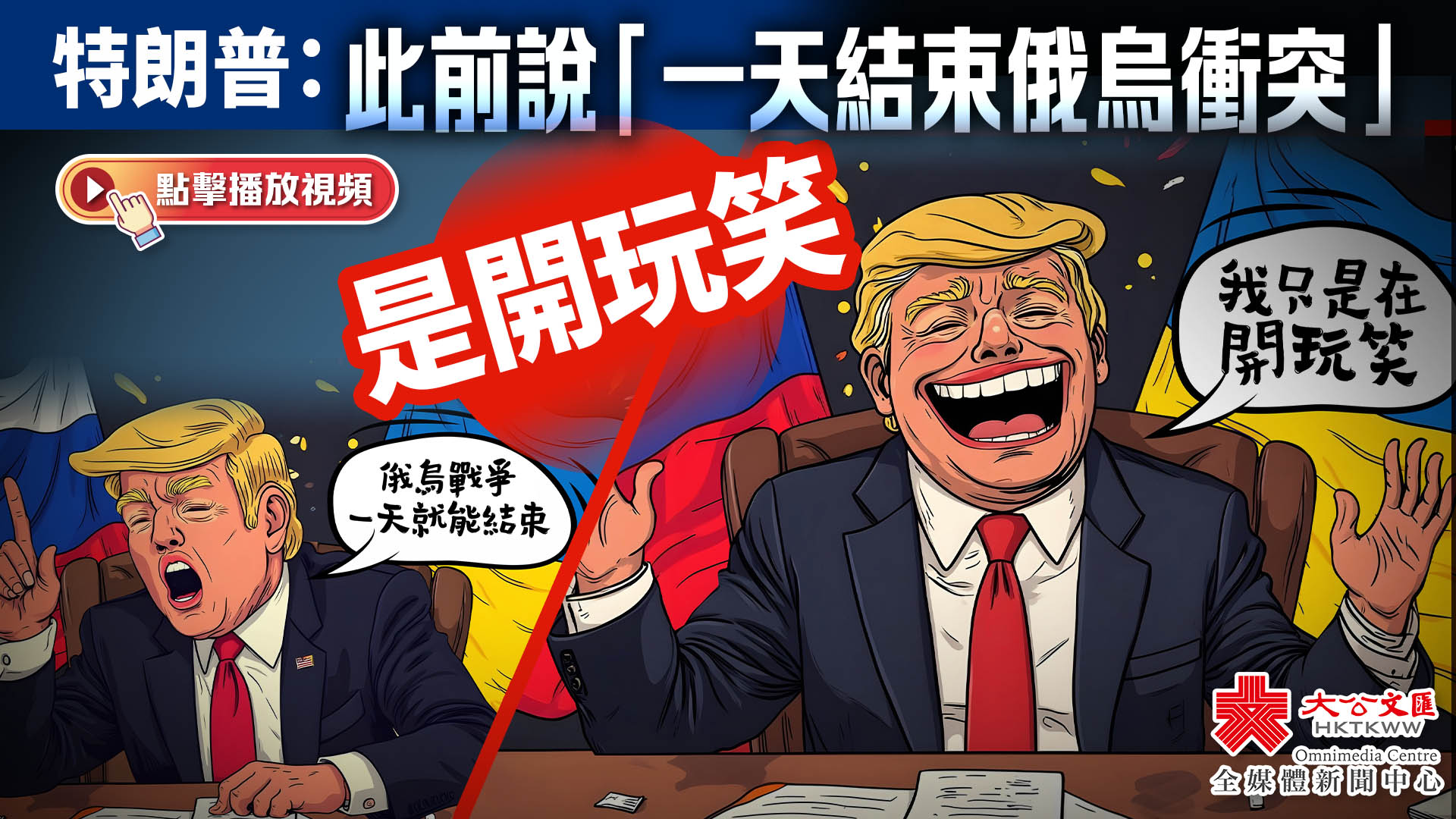 大公文匯網綜合美媒25日報道,美國總統特朗普在接受美媒採訪時稱,他在競選總統期間聲稱上任第一天結束俄烏衝突的說法,只是「開玩笑的」。