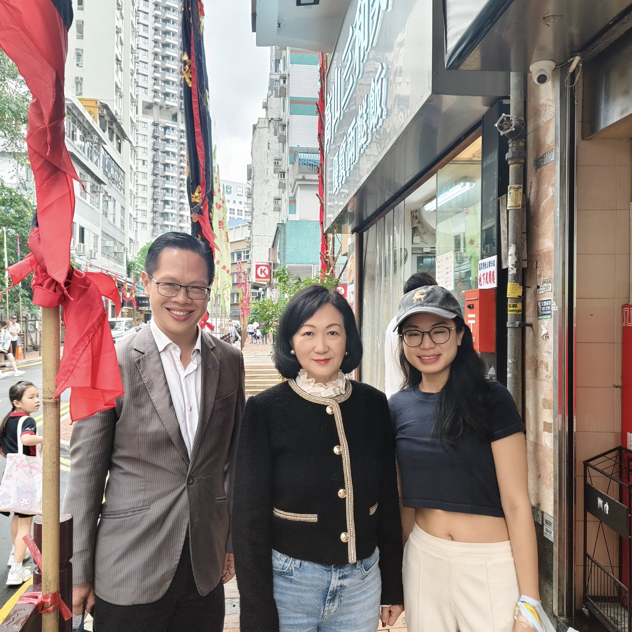 大公文匯全媒體報道,行政會議召集人、新民黨主席葉劉淑儀日前與黨友林梓鴻視察筲箕灣東大街。葉劉淑儀今日(26日)在社媒發文表示,東大街有不少著名特色食街及旅遊點。除各式食肆林立外,短短一條街已有三座歷史悠久的廟宇(包括天后廟、城隍廟及譚公廟)。葉劉淑儀光顧了屹立東大街多年名店王林記,品嘗了崩沙腩、切腩豉油撈麵、香蔥魚蛋及豬手等招牌名物。