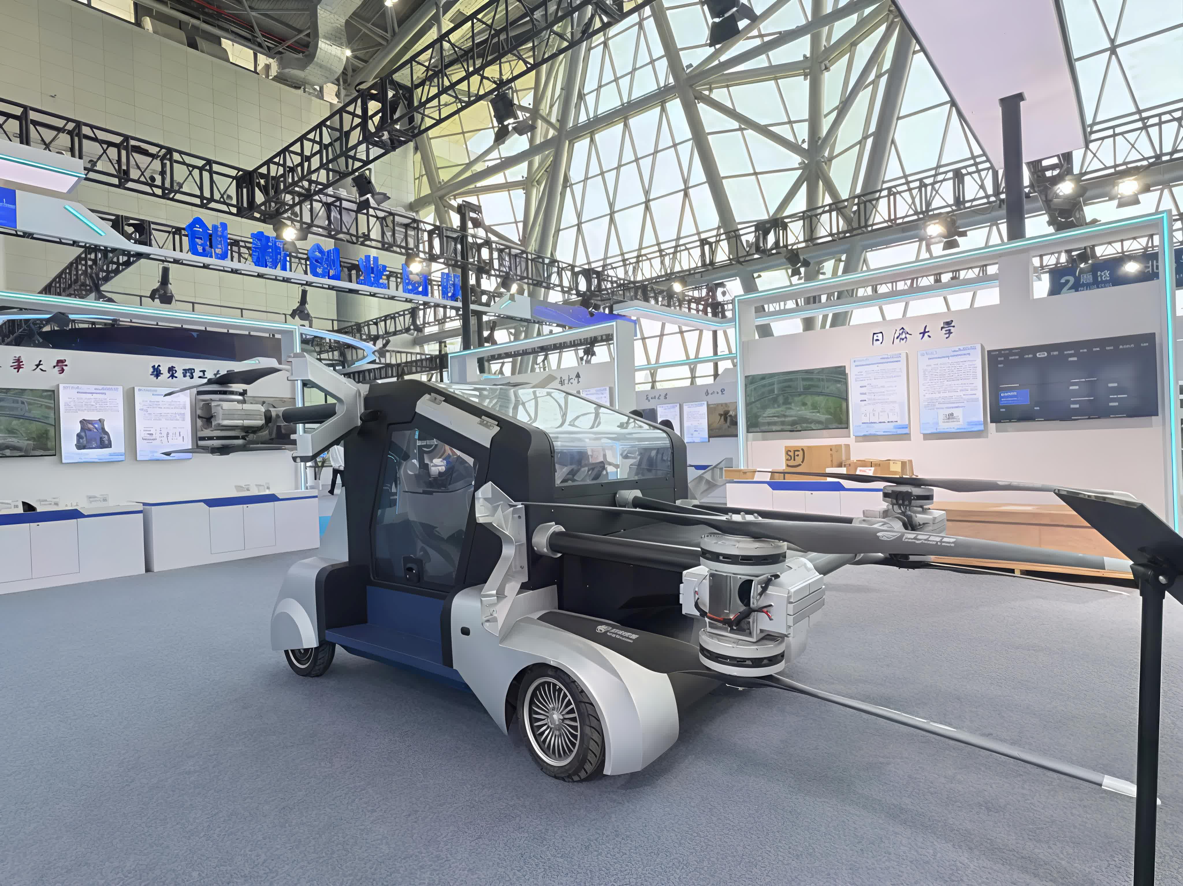 在展覽面積達2萬平方米的展館內,AI人工智能大模型、人形機器人、無人駕駛航空器、深空探測裝置等高科技展品遍布展區。在重點高校板塊,一台裝有螺旋槳的飛行汽車吸引了眾多記者的目光。由清華大學帶來的清華猛獅第三代飛行汽車,突破傳統車輛與飛行器的耦合模型,借鑒蜻蜓靈活度高、模態轉換迅速的生物構造優勢,設計了輕量化且緊湊的結構,能更好滿足城市立體交通環境的行駛需求,是解決未來城市交通擁堵難題的理想選擇。