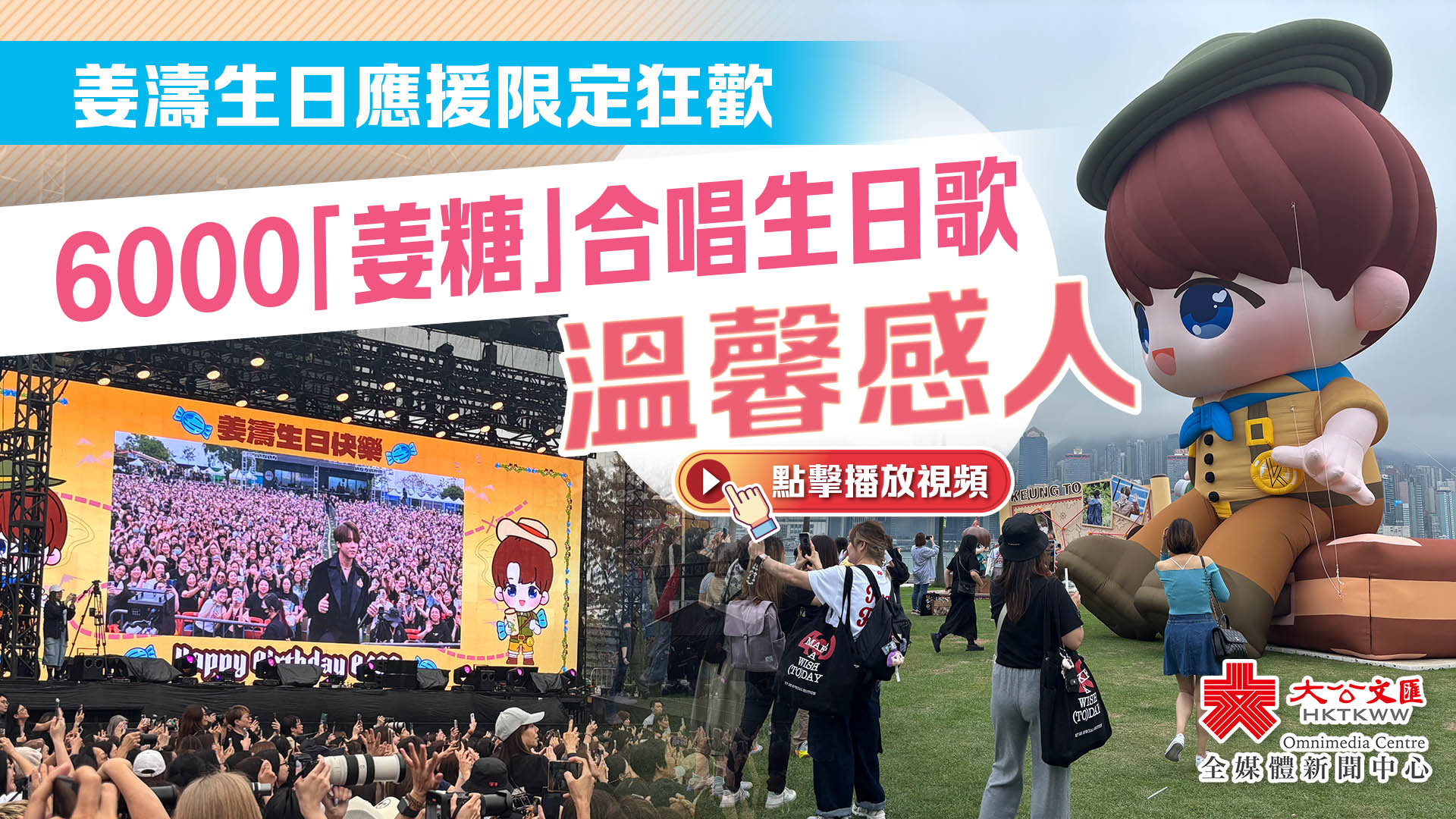 而「The Keung’s Show」今年迎來超過6000名「姜糖」於竹翠公園聚首一堂,齊齊合唱生日歌為偶像慶生,大會更特別製作巨型生日蛋糕,姜濤驚喜現身與粉絲一同慶生。一張張臉龐洋溢著幸福與喜悅,凝聚出偶像與粉絲之間深厚、無可替代的情感連結。這場充滿愛與笑容的慶生活動,成為每位「姜糖」心中永生難忘的珍貴回憶。