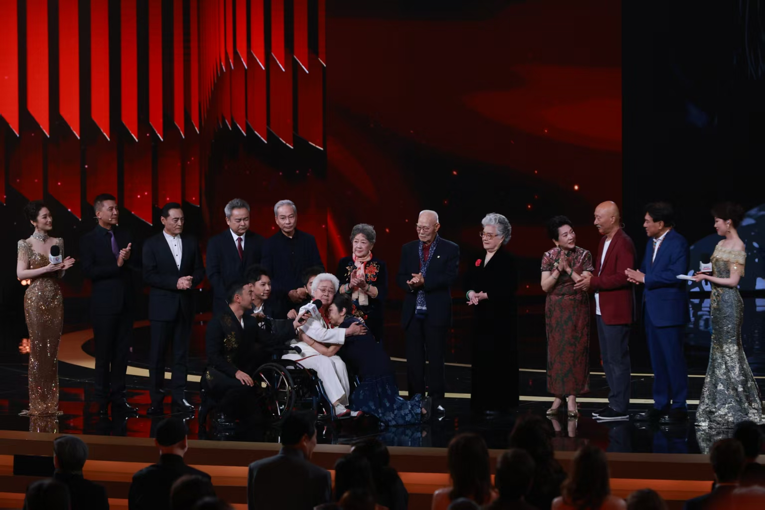 97歲表演藝術家田華在掌聲中接受終身成就獎。這位參演過《白毛女》《黨的女兒》等經典作品的電影人,用顫抖卻堅定的聲音訴說:「我一輩子都扎根於藝術,只要你們不嫌棄,我想為你們多做點事,為中國電影事業多做點事。」全場影人自發起立致敬,形成當晚最動人的藝術傳承圖景。