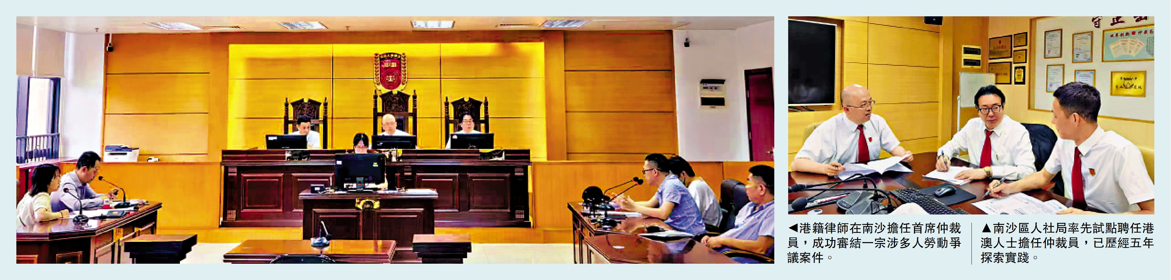 當前,南沙共有10名港澳籍勞動人事爭議仲裁員,年均參審勞動爭議100餘件,不僅穩定了港澳人士在內地投資創業就業的信心,更推動了粵港澳大灣區勞動爭議治理的一體化、規範化、法治化進程。港資企業鎮泰(中國)工業有限公司負責人表示:「得知南沙區聘任我們香港的同胞參與內地勞動爭議仲裁,倍感振奮!這不僅讓港人在灣區法治建設中發揮專業價值,更讓我感受到『他鄉遇故知』的親切。港人通過在南沙參與司法實踐,能在處理勞動爭議的過程中兼顧香港商業習慣與內地法規,使爭議解決更高效、更公正。這種制度創新,既增強港澳同胞的歸屬感,也讓我們對南沙投資環境更加信任。」