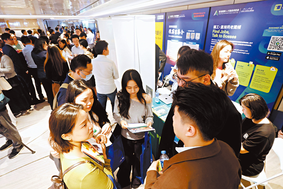 (香港文匯報記者 張茗、高鈺)為響應香港特區政府「八大中心」發展戰略,推動香港建設國際高端人才集聚高地,2025香港國際人才職業博覽會第一季的金融地產與專業服務專場暨國際人才在港發展機遇與挑戰研討會昨日舉行,近50家來自銀行、保險、地產及專業服務機構參加,提供數千個職位給優才、高才及應屆畢業生應徵,吸引逾3,000名人才到場。香港國際人才職業博覽會組委會主席駱勇表示,美國挑起的貿易戰令不少海外人才回流,作為大部分人才的首選,香港應當抓緊機遇「搶人才」和「留人才」。