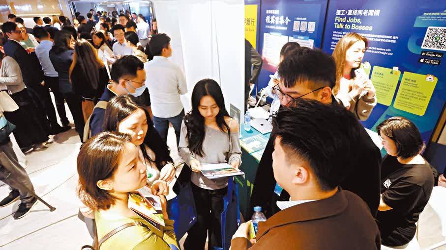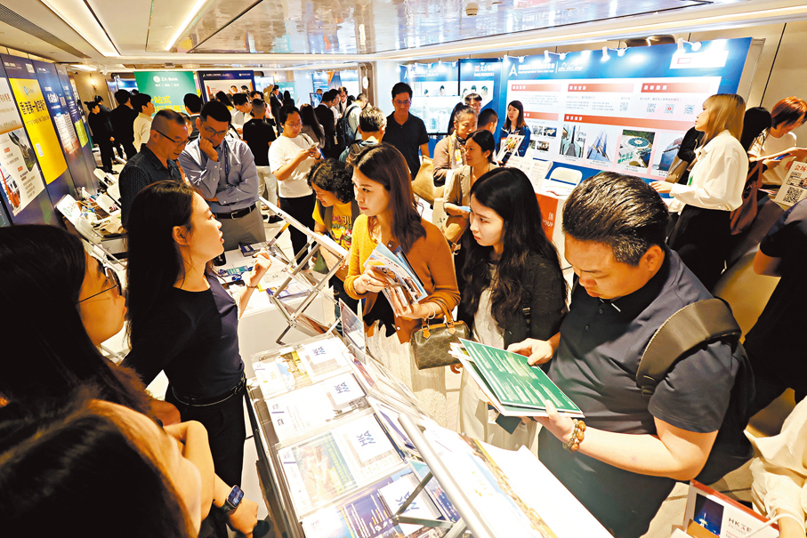 昨日舉行的博覽會以「才聚香江,智創未來,職等你來」為主題,根據「八大中心」的多個行業分四季舉辦。除了昨日的金融地產與專業服務等行業專場外,第⼆季為科技與創新行業專場,第三季是物流航運貿易及電商等行業專場,第四季則為文化創意與教育等行業專場。第四季專場將在會展中心舉辦,屆時會有兩層招聘展供人才選擇。