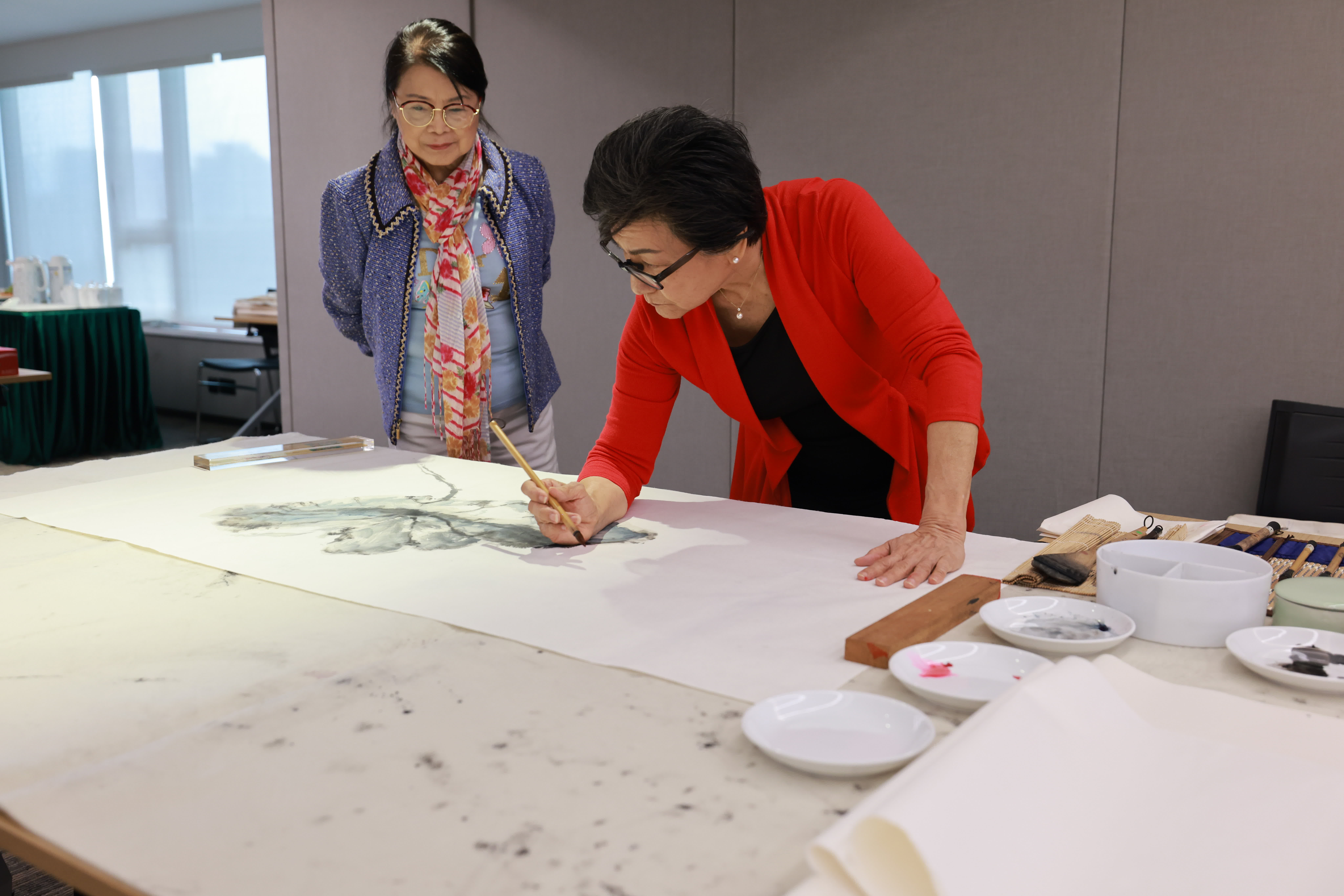 藝術家們於現場共同創作國畫《繁茂》,以新春花卉牡丹、水仙和玉蘭等作畫,營造出繁花似錦的氛圍;畫中的蒼松和翠竹,則象徵大公文匯事業根深葉茂、基業長青。藝術家們一致表示,整幅作品不僅呼應了節慶氣氛,也表達了對大公文匯傳媒集團未來繁榮昌盛的美好祝願。