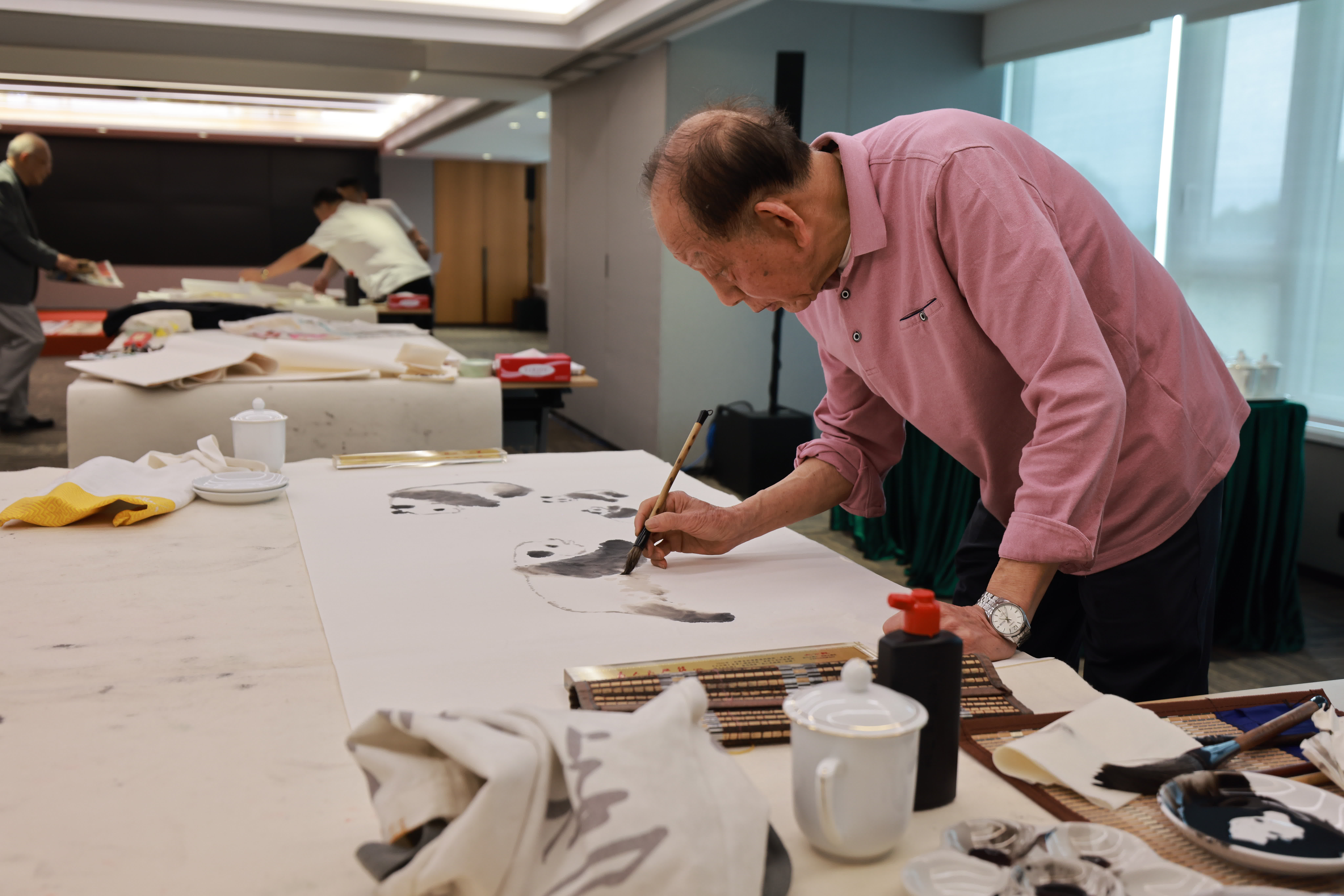 交流會上,藝術家們圍繞喜慶與祝福的主題揮毫潑墨。東方書畫院榮譽顧問何洵瑤的畫作表現了荷花在荷塘中的高潔姿態。她表示,荷花出淤泥而不染,象徵清雅與堅韌,與大公報、文匯報長期以來秉持的客觀真實記錄社會真善美的報格相契合。