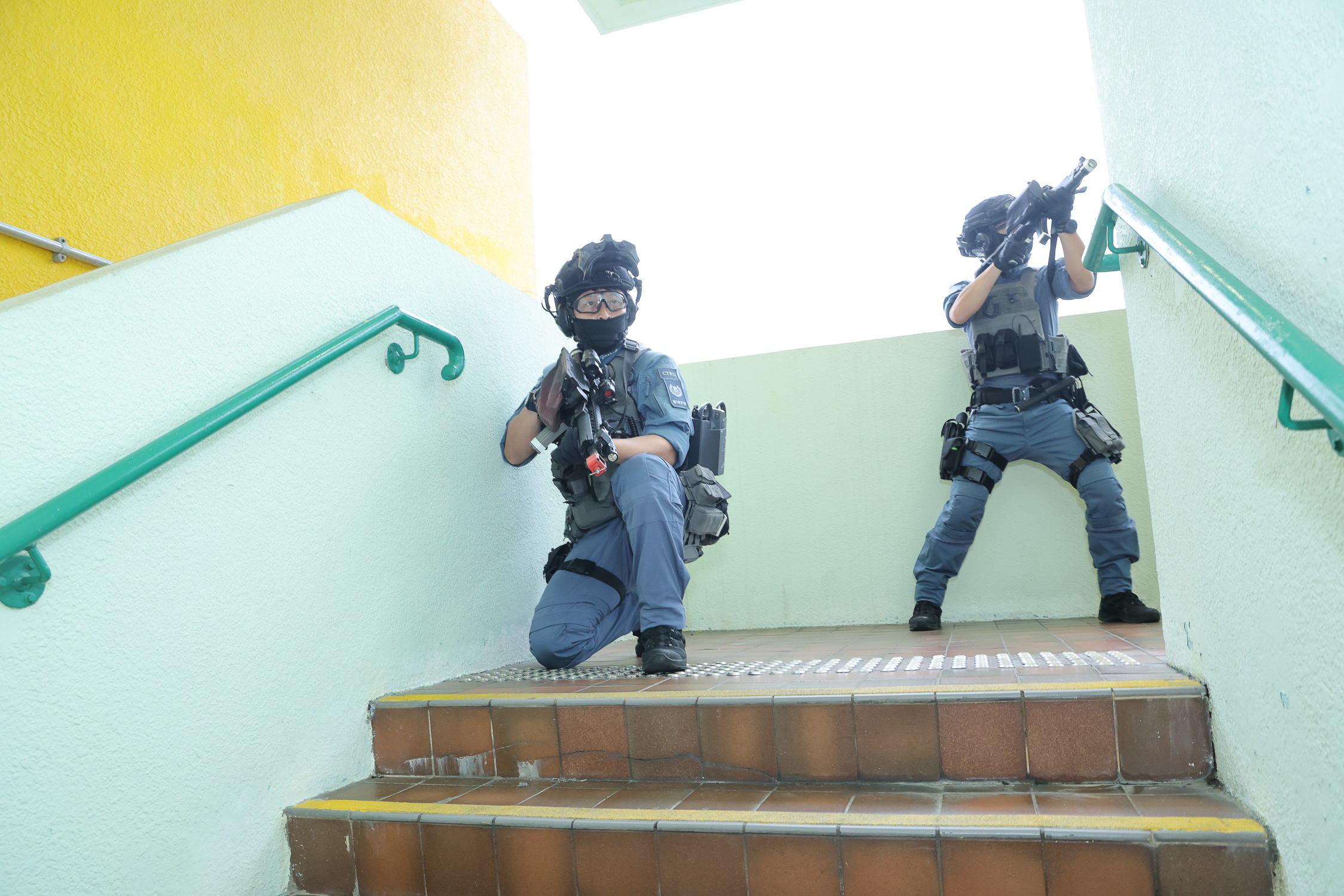 今日是活動進行的第二日,為了提高社會的整體反恐意識,警務處聯同消防處和勵進教育中心今日在康樂及文化事務署轄下的「曹公潭戶外康樂中心」舉行代號為「安橋」的跨部門大型反恐演習,有逾130名學生藉此教育參加者遇到恐怖襲擊時應採取的行動,從中實踐「閃、避、求」和「見疑即報」等指引,並加深他們對恐怖主義威脅的認知和警覺性。另外,參加者也在演習前與專業部隊隊員進行近距離交流,讓他們更深入地了解各個專業部隊的裝備。