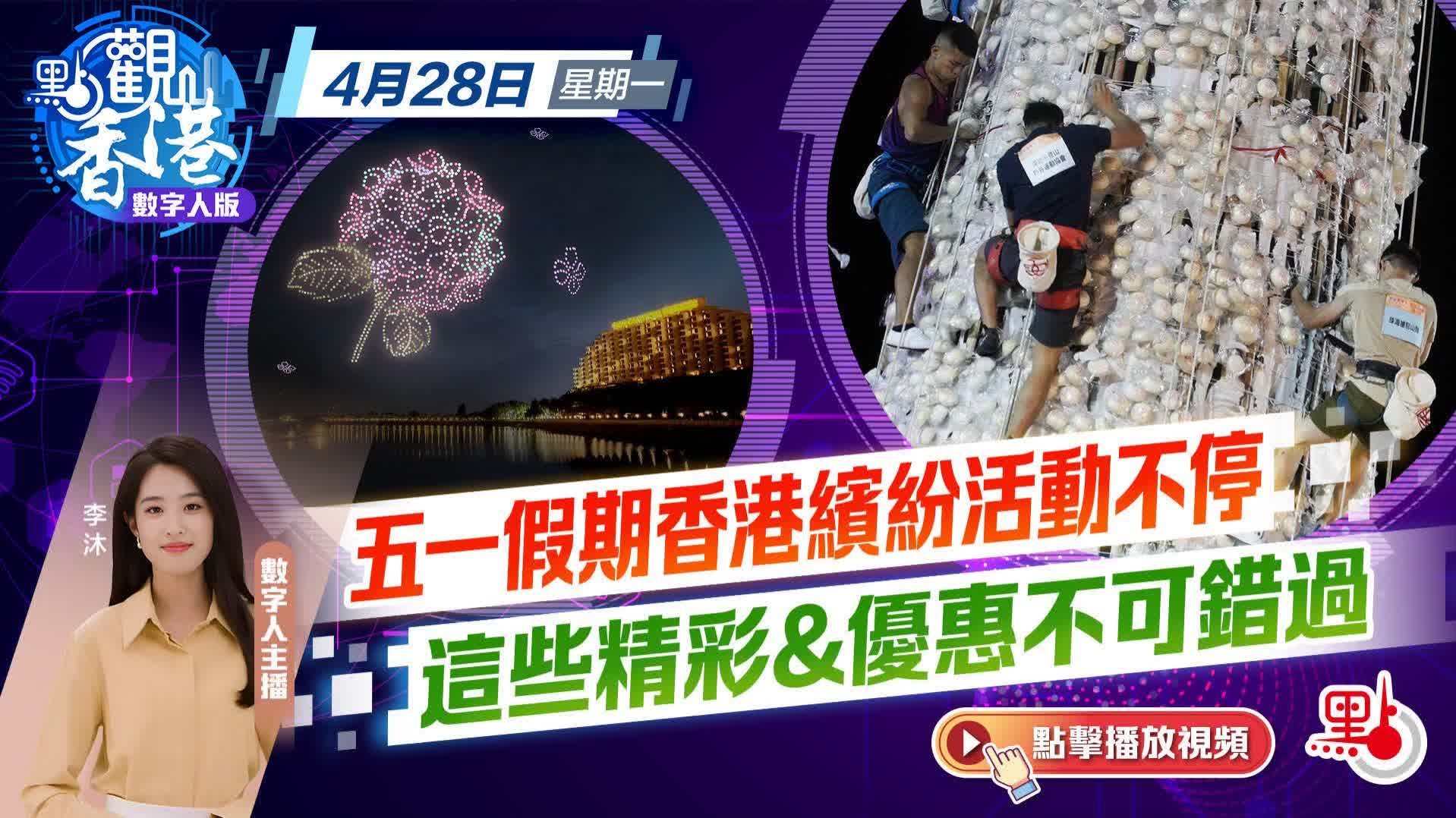 除無人機表演外,5月5日是香港佛誕假期,大嶼山寶蓮禪寺將舉行浴佛節,維園也將舉辦佛誕嘉年華。此外,長洲太平清醮的搶包山及飄色巡遊也是本港傳統節慶活動的重頭戲。想要獲取本港五一假期更多精彩活動,掃描屏幕上的二維碼即可查看。