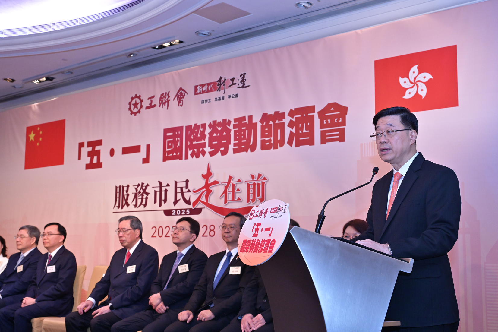 李家超首先向各打工仔女問好,預祝大家勞動節快樂。工聯會是香港歷史最悠久和最大的勞工團體,一直秉持「愛國、團結、權益、福利、參與」方針,促進勞工權益,推動社會發展。多年來,工聯會在促進勞資溝通發揮重要作用,經常就勞工議題向政府建言獻策,更積極參與社會事務,支持和參與香港融入國家發展大局,為本地勞工、香港社會以至國家發展作出積極貢獻,我肯定你們的工作。