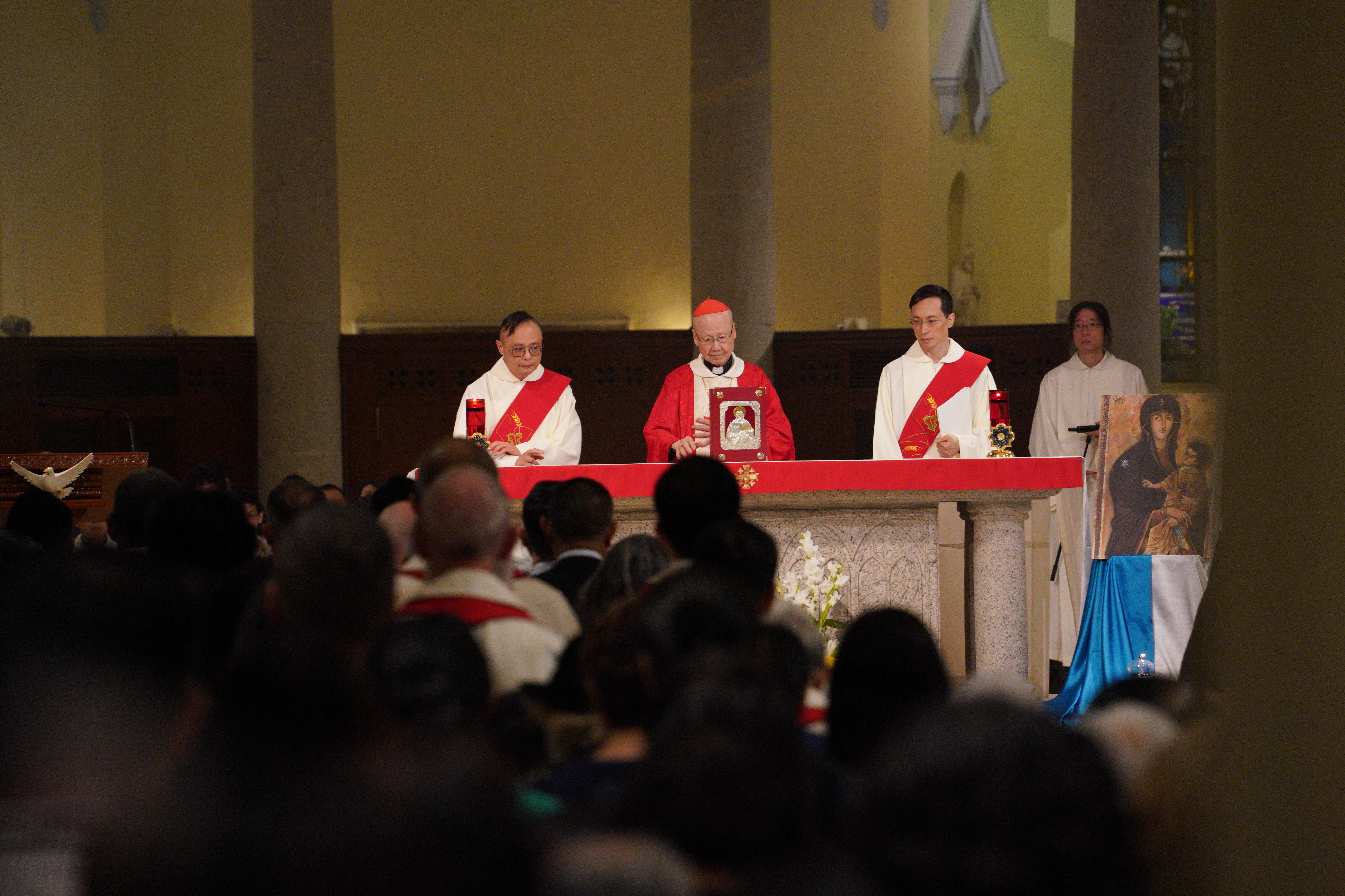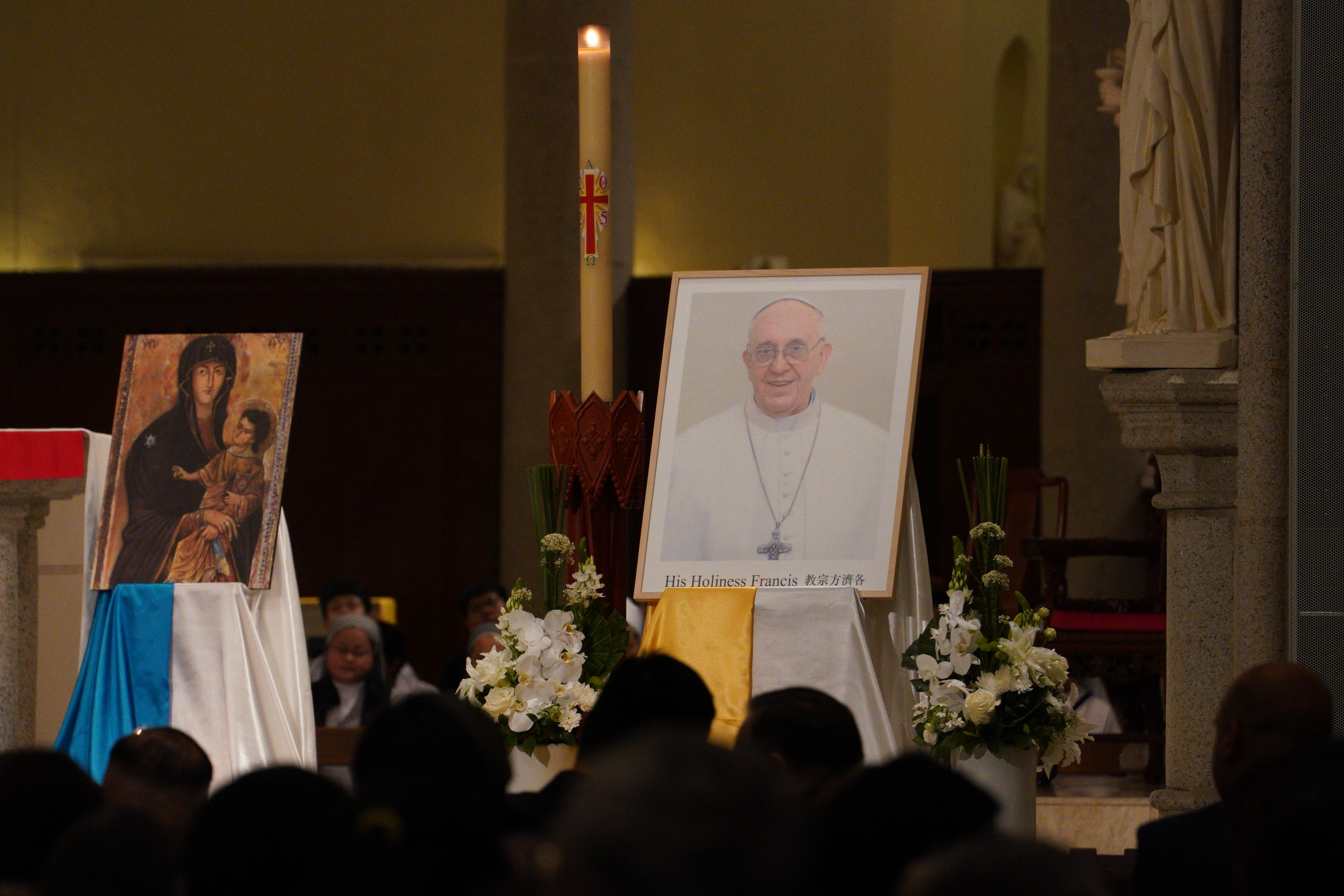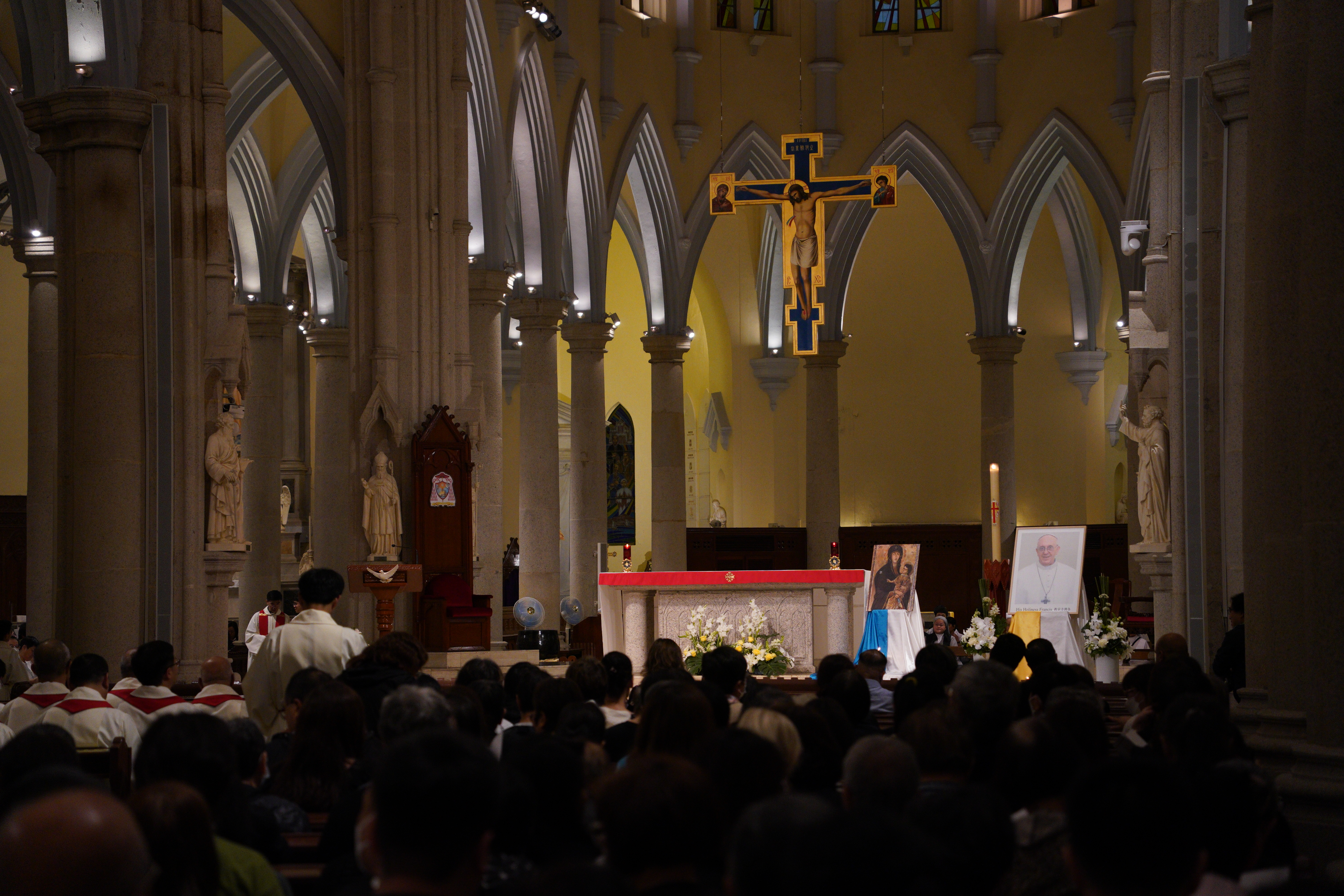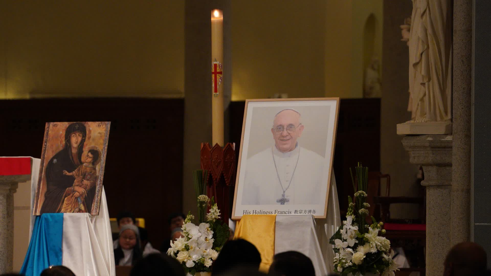 大公文匯全媒體報道,教宗方濟各4月21日去世,享年88歲。天主教香港教區今日(28日)晚上在半山堅道的聖母無原罪主教座堂舉行追思彌撒。彌撒由86歲的榮休主教湯漢樞機講道,前特首曾蔭權、林鄭月娥均有到場。