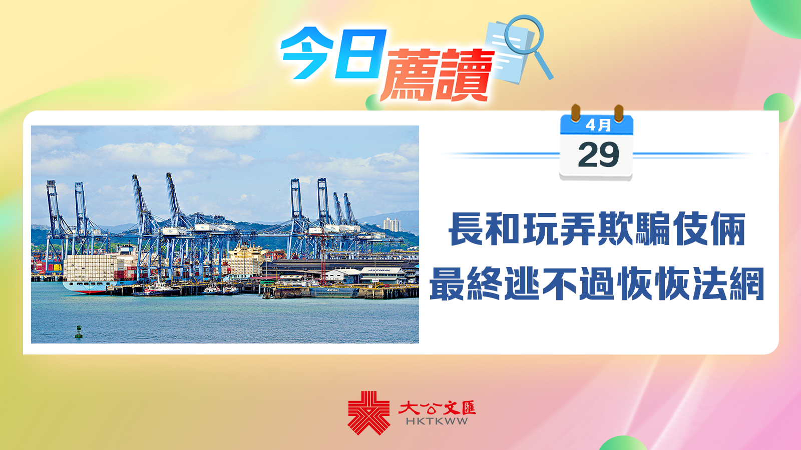 大公報新聞綜述。有外媒報道稱,長江和記公司計劃將出售海外港口分拆為兩個交易繼續進行。國家市場監督管理總局日前表示,交易各方不得採取任何方式規避審查,未獲批准前,不得實施集中,否則將承擔法律責任。點擊閱讀詳情