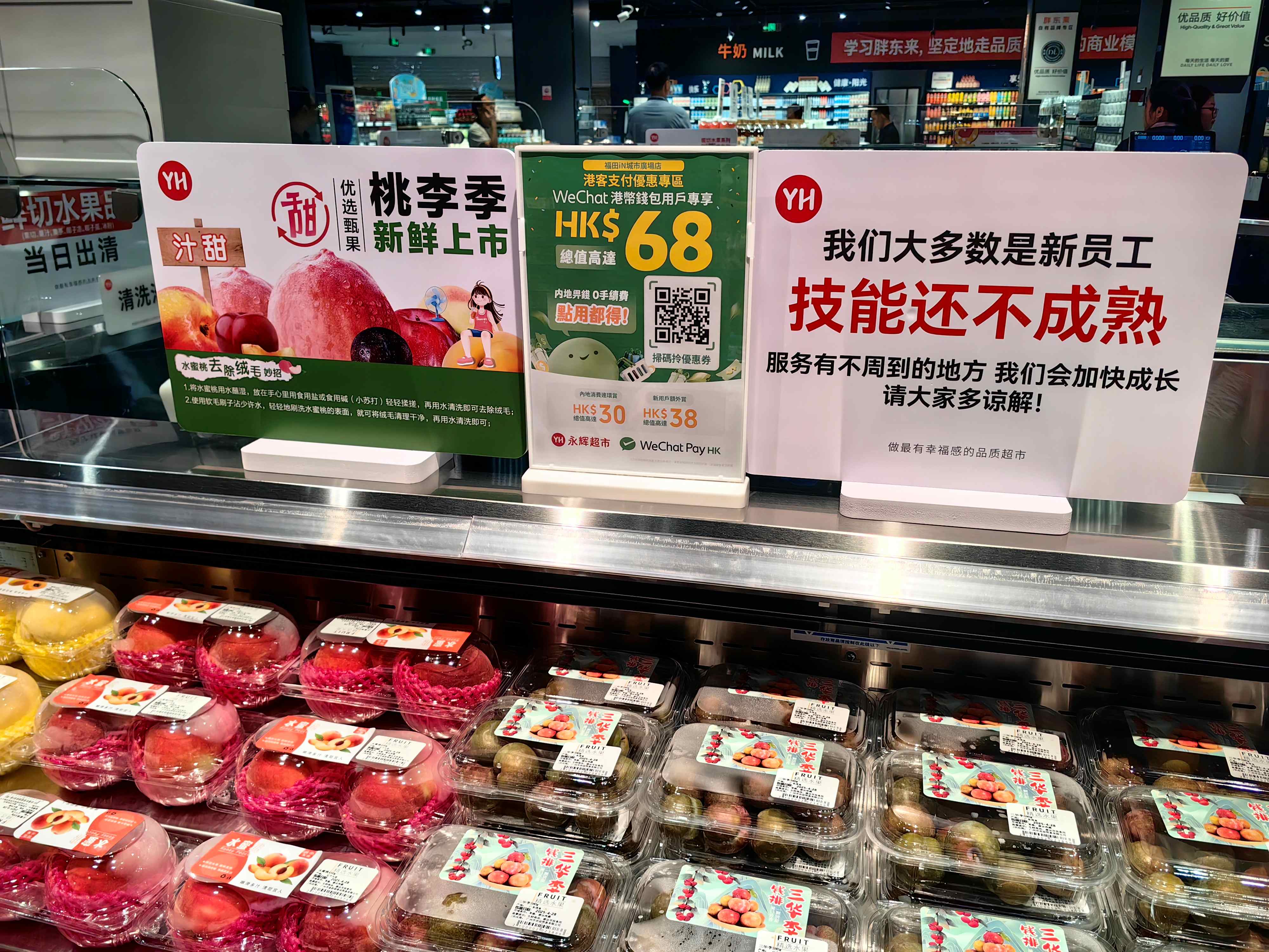 (大公文匯網記者 郭若溪)4月29日起,永輝深圳福田iN城市廣場店、羅湖益田假日廣場店以「胖東來模式」煥新亮相,兩店距福田、羅湖口岸均約五公里,精準承接港人北上消費潮。門店以「港味潮流+社區煙火」為特色,不僅同步胖東來80%核心商品體系,更設港客支付優惠專區,依託AlipayHK、WeChat Pay HK推出跨境滿減,實現「支付無障礙、優惠隨手領」。