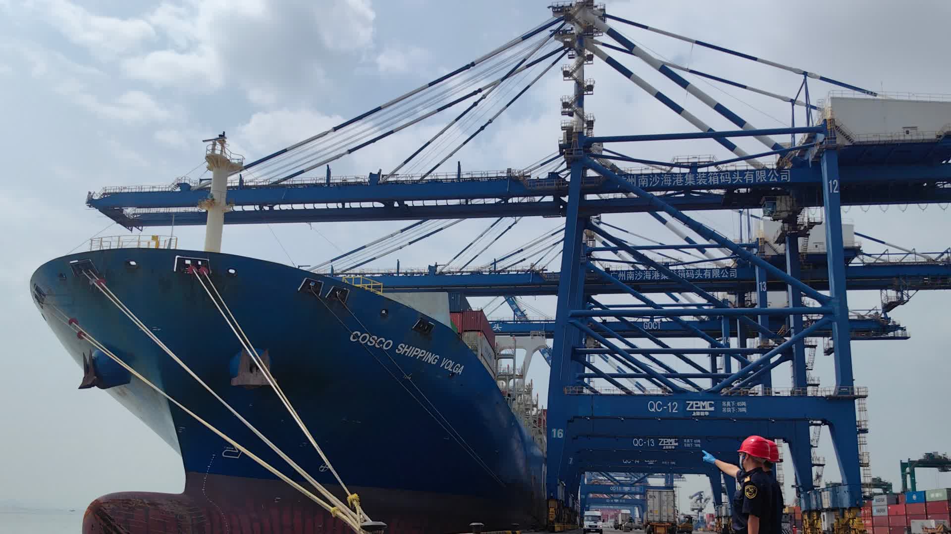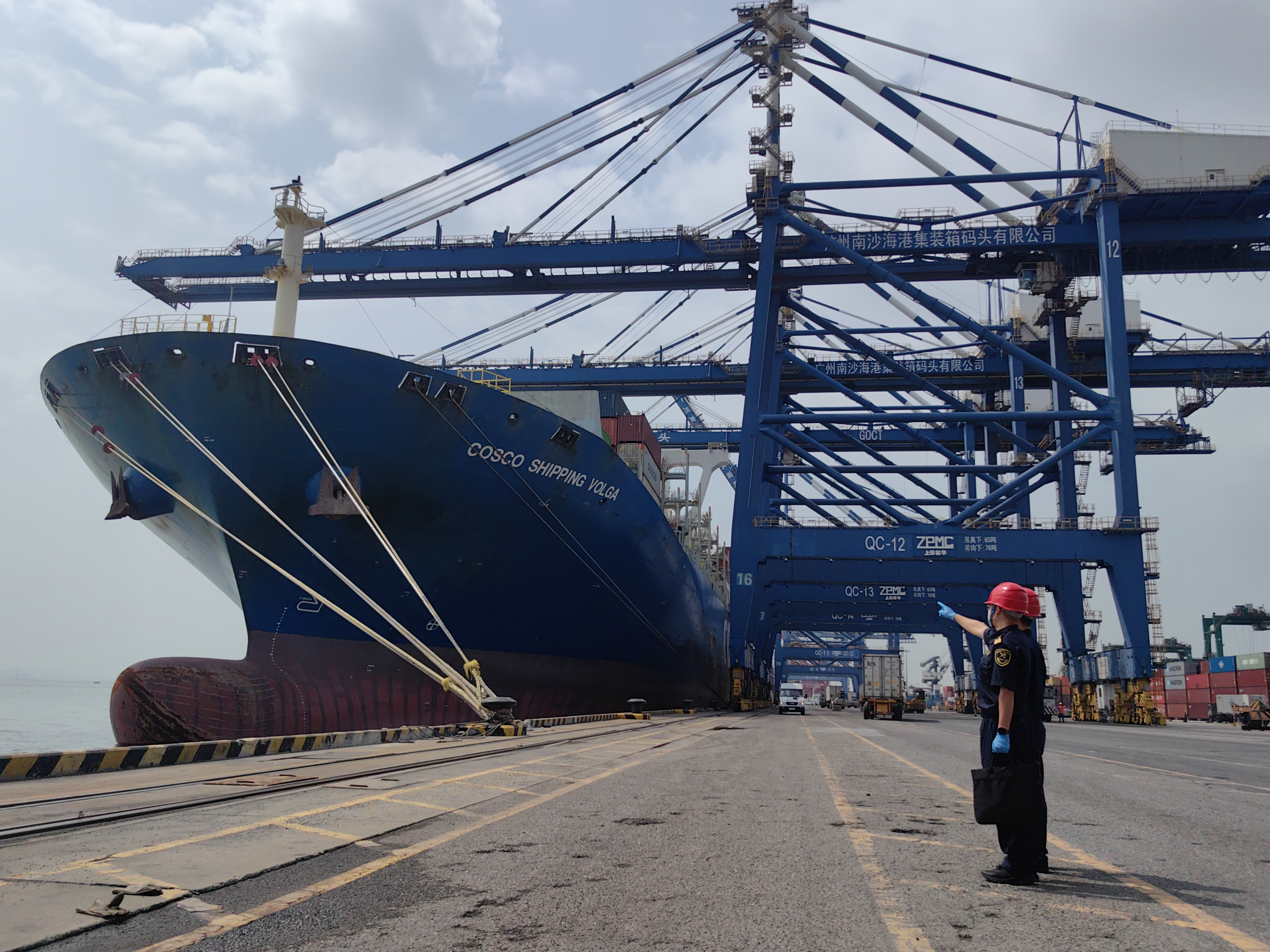「為保障貨物高效順暢通關,我們大力推廣出口貨物『運抵直裝』等便利化舉措,支持出口貨物運抵碼頭後直接裝船,進一步壓縮通關時間。接下來,我們將持續推進智慧海關建設和『智關強國』行動,充分運用好『智慧堆場』『查驗可視化』等15個聯動應用場景,將海關監管順勢嵌入口岸物流運作,推進智能通關集成改革,進一步提升監管效能,助力南沙國際航運樞紐建設。」廣州海關所屬南沙海關南沙港運輸工具監管科副科長曾德志表示。