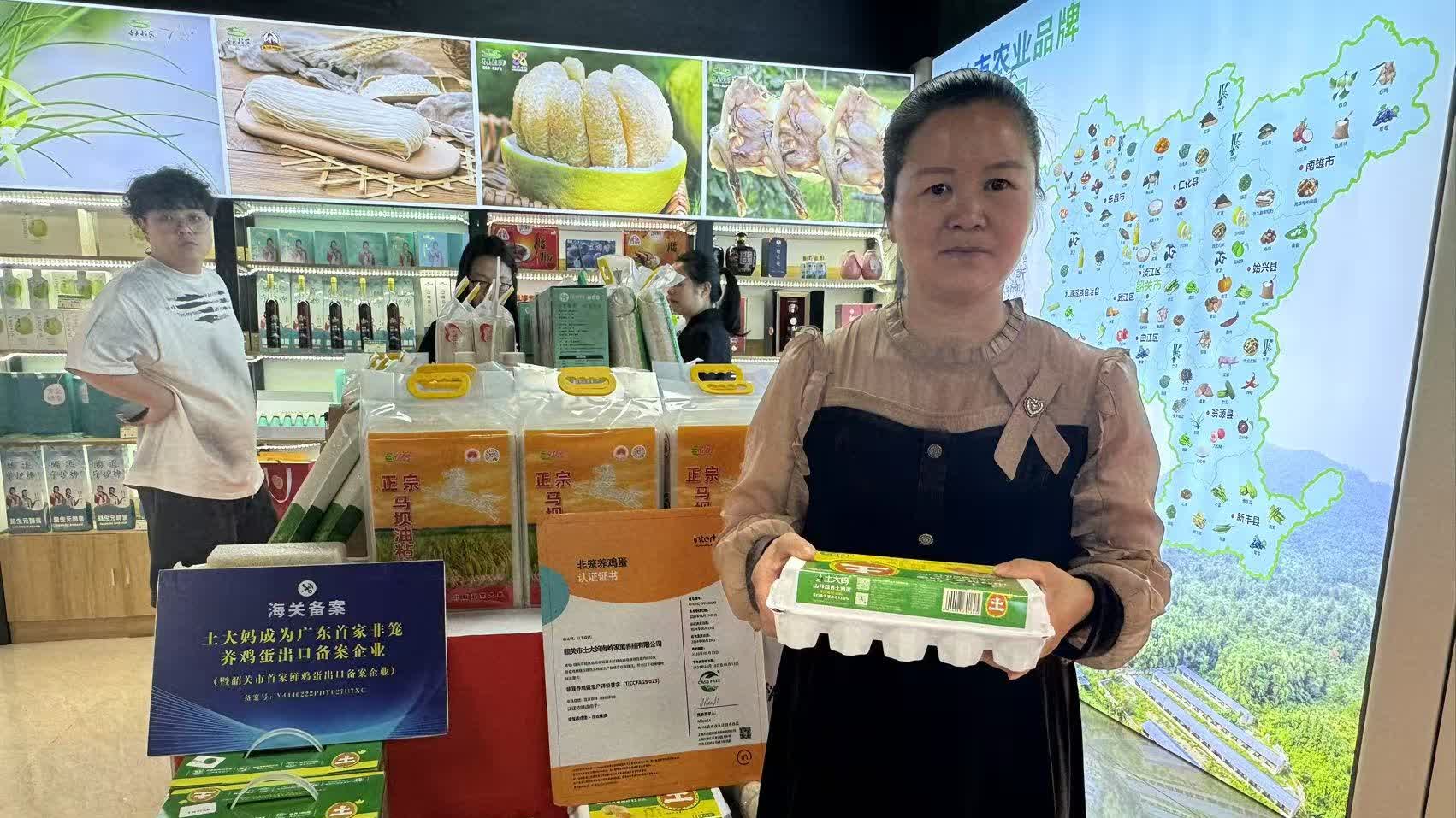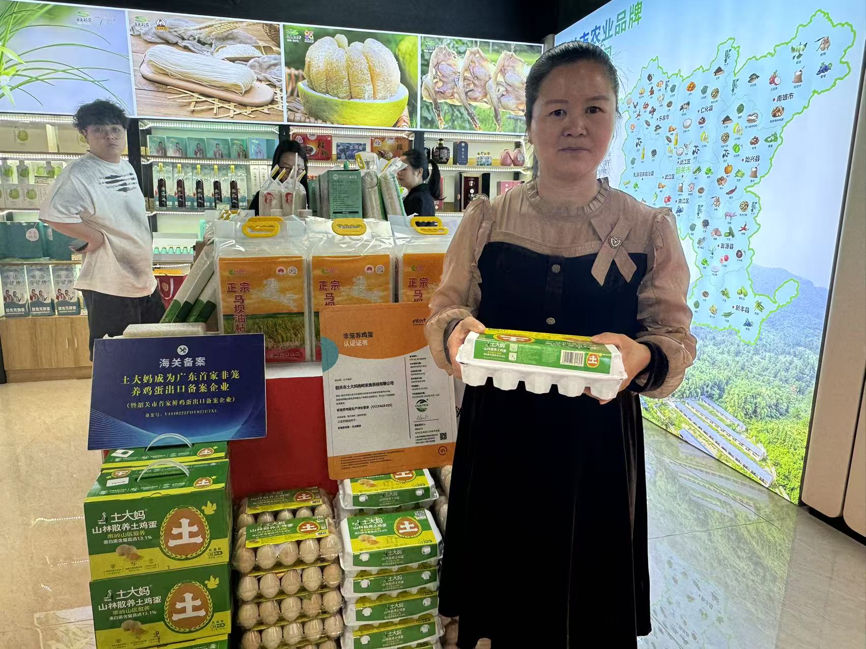 該交易中心也匯聚不少供港產品。在韶關館,記者見到來自始興縣的「土大媽」山林散養雞蛋。該企業展位處還設有二維碼供即場查看雞場實時影像。「土大媽」品牌散養雞土雞蛋出口企業負責人蔡麗萍表示,該基地佔地600畝,養殖10萬隻產蛋母雞,產蛋率高達96%,其中2/3供應香港市場。「我們的雞蛋是廣東省內唯一散養雞蛋,品質口感優於一般雞蛋。」她說,供港產品對食品安全與品質要求極高,隨着交通物流改善,雞蛋4至5天內即可運抵深圳及香港。她說:「期望藉助交易中心平台,把更多來自山區的優質農產品帶到大灣區市民的餐桌上。」