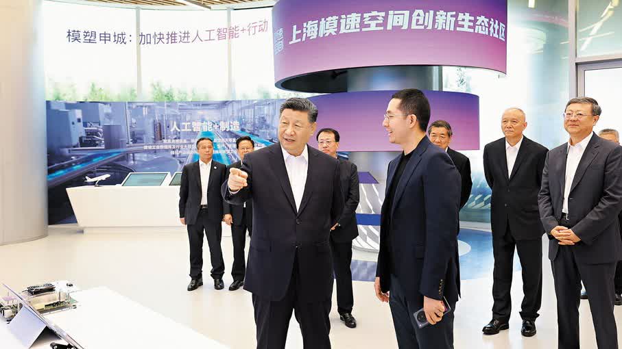 昨日上午,習主席來到位於徐匯區的上海「模速空間」大模型創新生態社區調研。習主席指出,人工智能技術加速迭代,正迎來爆發式發展,上海要總結好以大模型產業生態體系孵化人工智能產業等成功經驗,加大探索力度,力爭在人工智能發展和治理各方面走在前列,產生示範效應。習主席還與青年創新人才親切交流,表示人工智能是年輕的事業,也是年輕人的事業。勉勵年輕人懷愛國之心、立報國之志、增強國之能,把個人奮鬥同國家前途命運緊緊聯繫在一起,跑好歷史的接力棒。