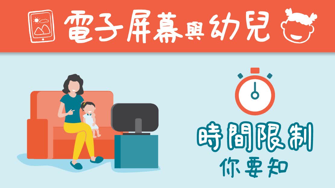 六歲前是嬰幼兒發展的黃金期。衞生署建議,兩歲以下的嬰幼兒除可在家長陪同下進行視像交談外,應盡量避免接觸電子屏幕產品。兩至五歲兒童的屏幕使用時間應限制至每天少於一小時,而這些屏幕活動應具互動和教育性,並在家長指導下進行。