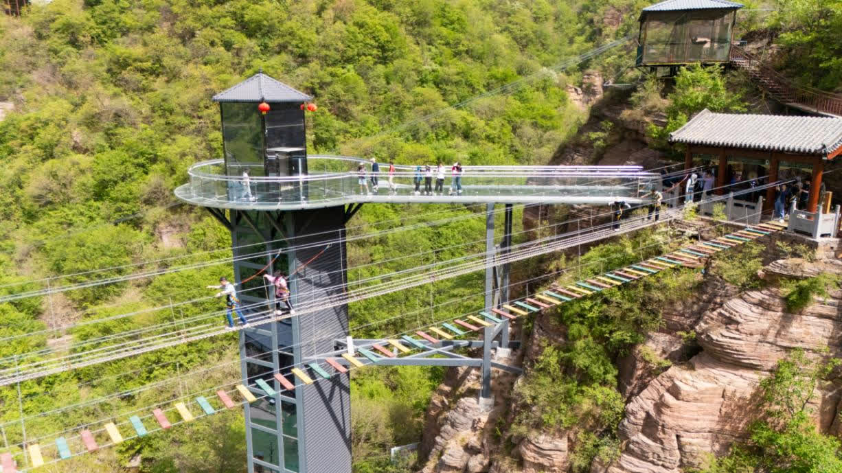 這裏還上新高空索橋、崖壁滑漂兩大驚喜體驗項目。龍潭大峽谷的高空索橋,是懸於天地間的勇氣試煉場,88米長索橫跨紅岩嶂谷,40米深淵在腳下咆哮,每一步踏出,風撕裂雲層,心跳與峽谷的呼吸共振,抬眼是千仞丹霞蒼穹碰撞的壯闊。