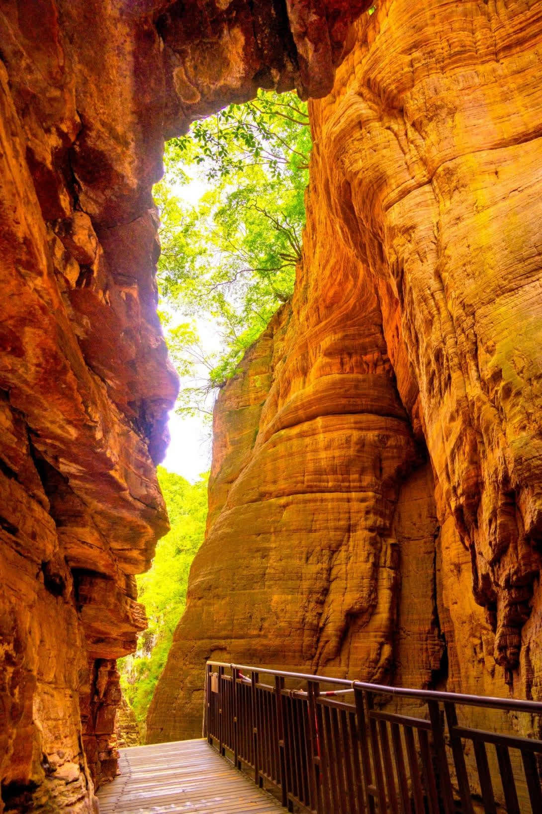 想邂逅大自然,感受詩和遠方的美好,不如來龍潭大峽谷,這裏不僅有獨一份的紅岩奇觀,260萬年的流水切割,將12億年前沉積的紫紅色石英砂岩雕琢成萬仞赤壁。