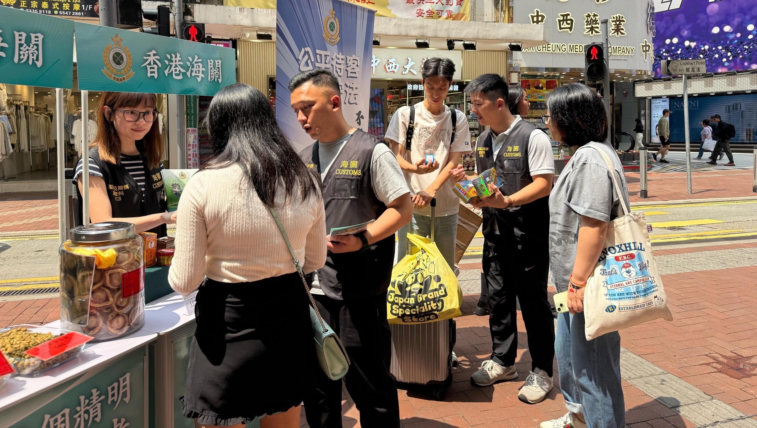 除了巡查購物熱點之外,海關人員亦會到油尖旺和銅鑼灣等旅遊購物區的藥店、參茸海味店、珠寶首飾店及小販攤檔進行合規宣傳教育,提醒商戶和旅遊從業員遵守《條例》的規定。