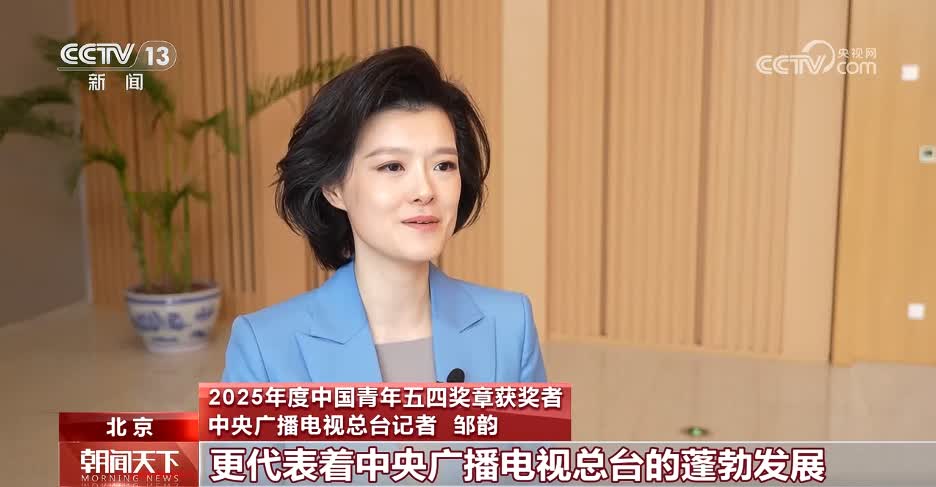 2025年度中國青年五四獎章獲獎者、中央廣播電視總台記者鄒韻表示:「這份榮譽不僅代表我個人,更代表着中央廣播電視總台的蓬勃發展。在今後的工作中,我將繼續通過一條條客觀翔實的報道打破偏見,一場場真誠深刻的對話促成文明互鑒,在國際輿論場展現中國青年媒體人的專業素養和敬業精神,踐行大國媒體外交的使命,在國際舞台發出新時代的中國聲音。」