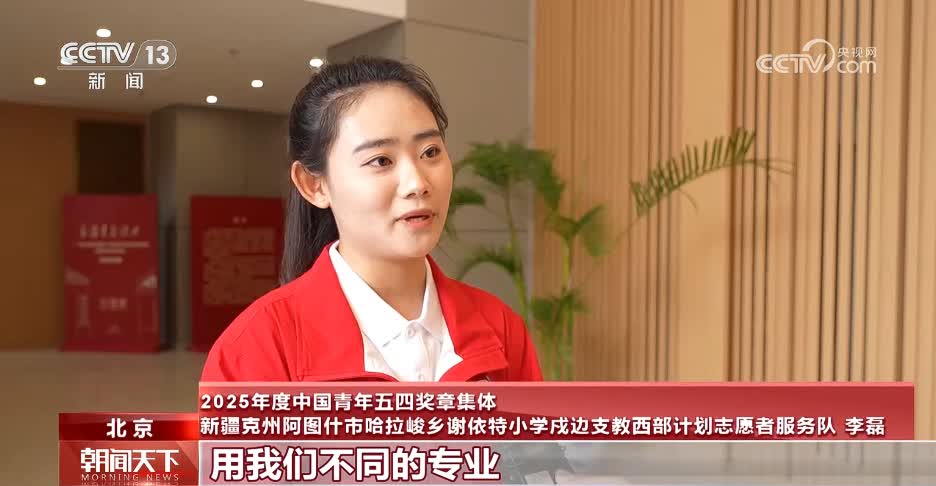 2025年度中國青年五四獎章集體、新疆克州阿圖什市哈拉峻鄉謝依特小學戍邊支教西部計劃志願者服務隊李磊說:「用我們不同的專業去給孩子們開拓視野,也希望廣大青年能夠投身西部,扎根基層。」