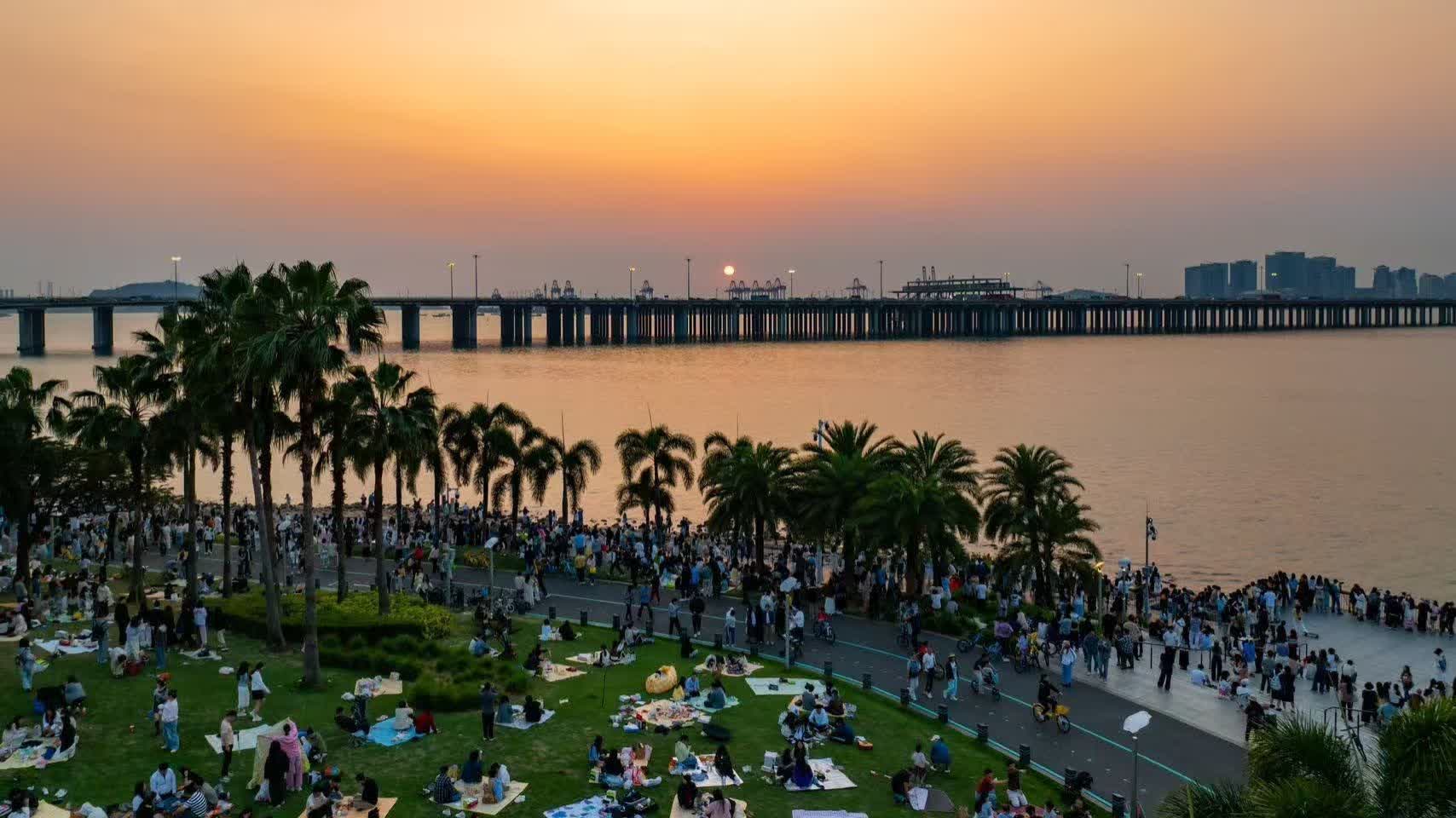 「五一」假期,深圳公園活力全開,多場主題活動嗨玩不停。「深圳灣自然音浪FM260」以日齣劇場為天然舞台,打造跨界音樂盛宴。流行歌手派派、Emily、北辰polaris樂團等輪番獻藝,民間鼓手更開設手鼓教學工坊,讓零基礎觀眾也能即興創作。從午後到日落,讓市民在音樂中感受「生活即治癒」的獨特魅力。