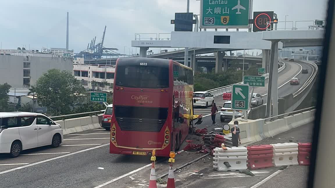 大公文匯全媒體報道,西九龍公路發生交通意外。今日(5月1日)下午近12時半,西九龍公路及青沙公路交界近海麗邨,一輛城巴懷疑失控撞向分叉路口防撞水馬。據報意外造成至少19人(10女9男)受傷,均輕傷。警方正調查事故成因。