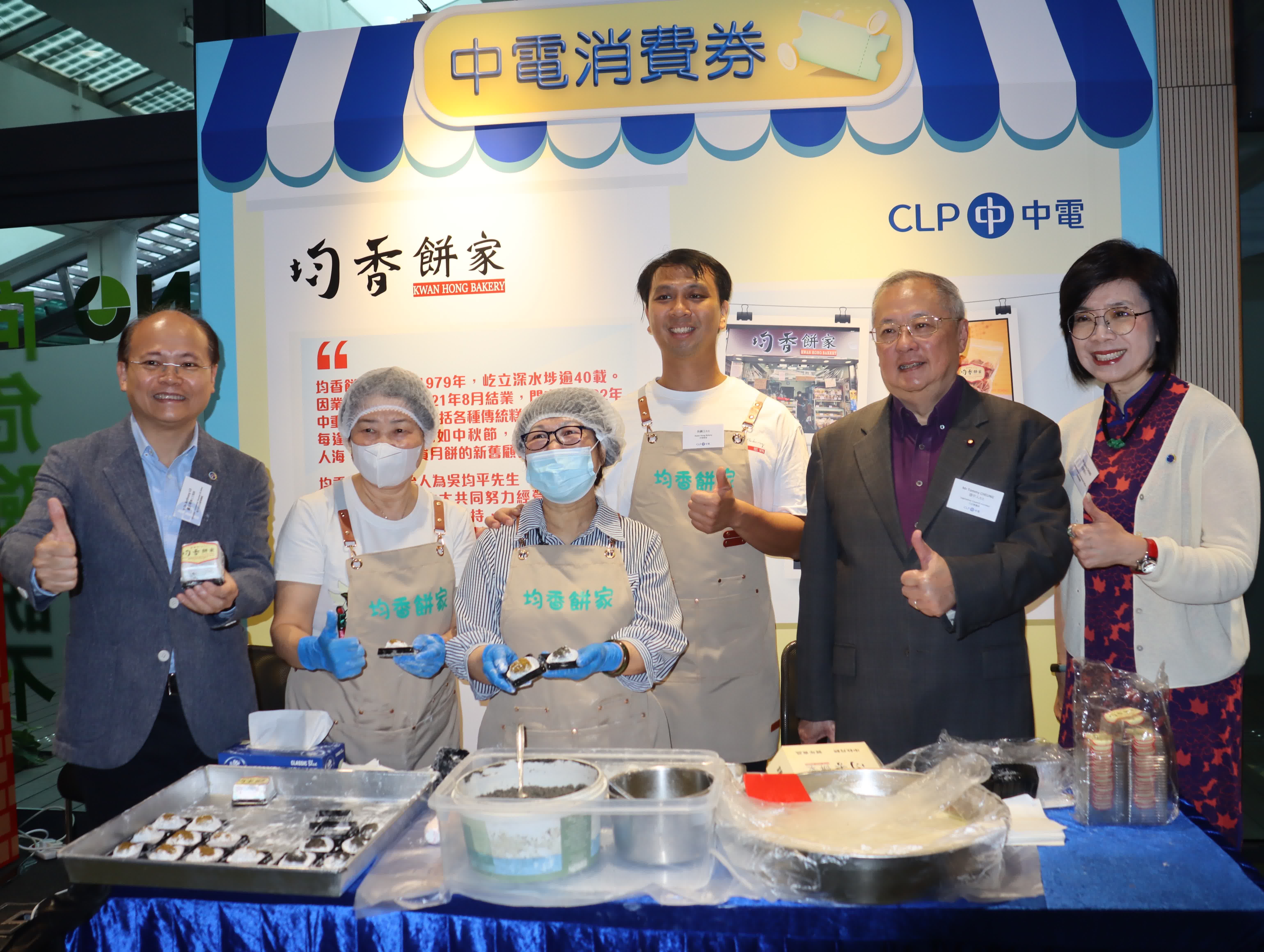 多間參與商戶在計劃啟動禮上向現場業界人士介紹產品。深水埗老字號均香餅家負責人吳鎮江表示,該店於2021年首次參與中電消費券計劃,當時正受疫情影響導致人流減少,但見到有不少客人用中電消費券購物,並會「加碼」買多一些糕點,增加消費金額。他表示,希望今年通過計劃,再次發揮中電消費券的乘數效應,吸引更多本地顧客到店舖消費。