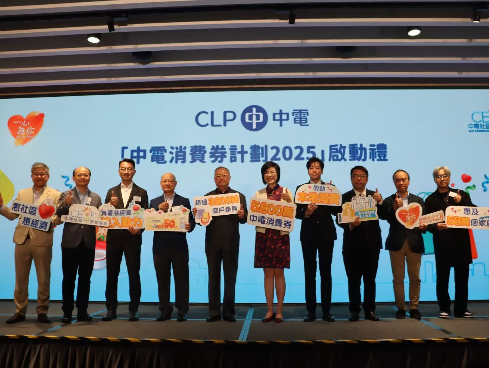 中電今年透過「中電社區節能基金」撥款2.4億港元,推行多項社區支援計劃,提振經濟及扶助弱勢社群,預計受惠人數超過90萬,「中電消費券計劃」為其中一個項目。中電同時推動各界攜手節能減碳,推出一系列資助計劃,包括支援工商客戶特別是中小企,更換具更高能源效益的設備,實踐低碳轉型。