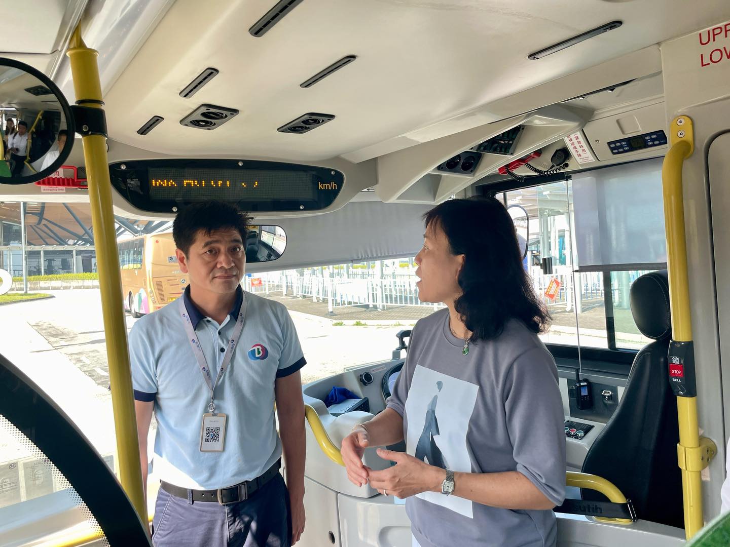 陳美寶今早在運輸署兩位助理署長的陪同下,到港珠澳大橋視察跨境口岸交通情況,並與多間巴士營運商會面,亦為親身感謝各前線車長的服務。她欣悉各口岸的交通情況在勞動節長假首兩日大致暢順,如她身處的港珠橋大橋,金巴最高峰時少於一分鐘就會開出一班。而珠海方交通管理部門亦會在有需要時於港珠澳大橋設置供金巴、跨境直通巴士及大型車輛使用的專用通道。金巴負責人向陳美寶透露,在五一當日,金巴客量較平時多出6%。