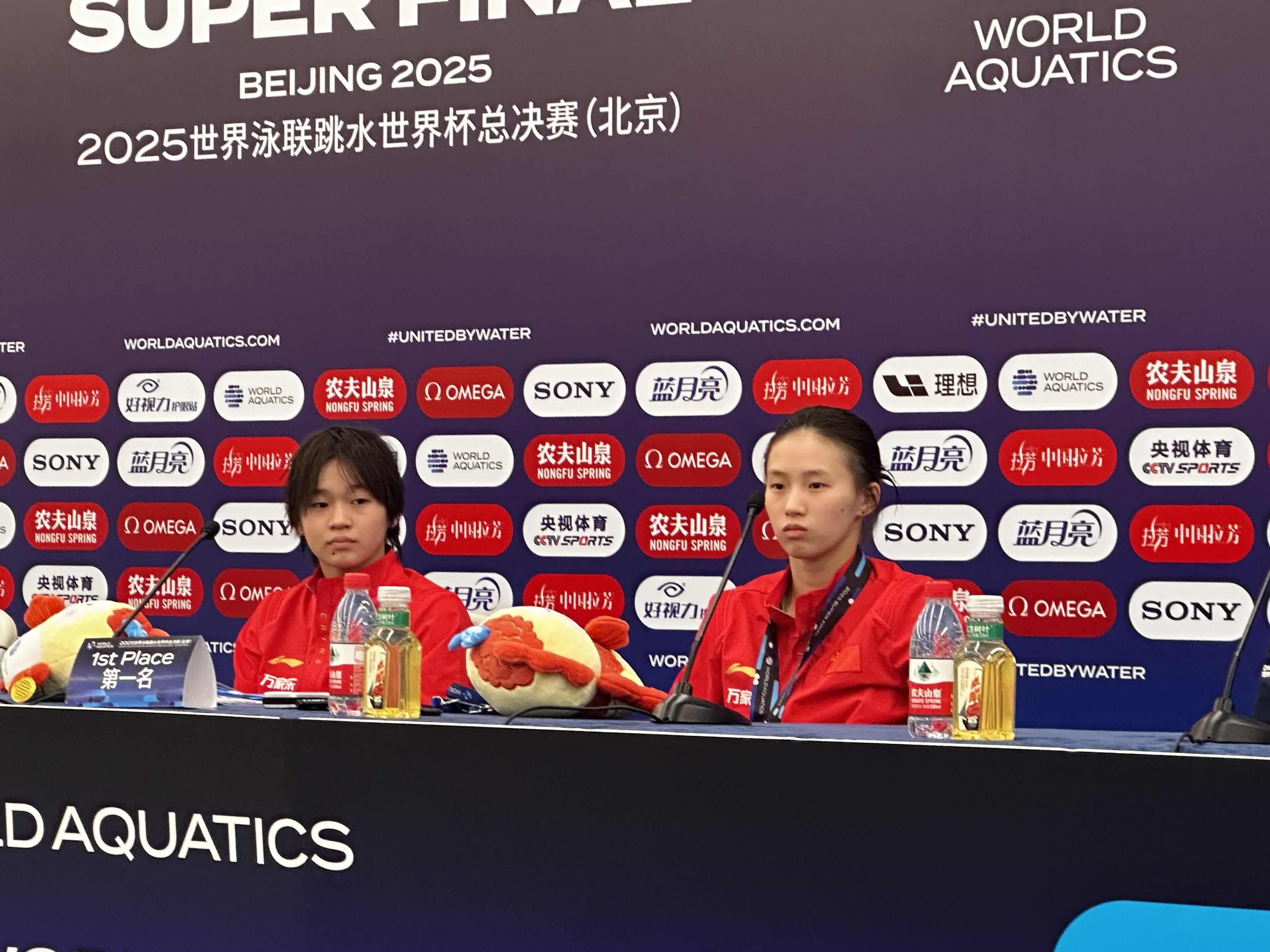 (大公文匯網記者 蘇雨潤 北京報道)5月2日,世界泳聯跳水世界盃總決賽女子雙人十米台決賽,中國組合陳芋汐、全紅嬋發揮出色,最終以總成績350.88分拿下該項目的冠軍、中國隊今日的第3枚金牌。這也是她們在巴黎奧運會之後首次合體。