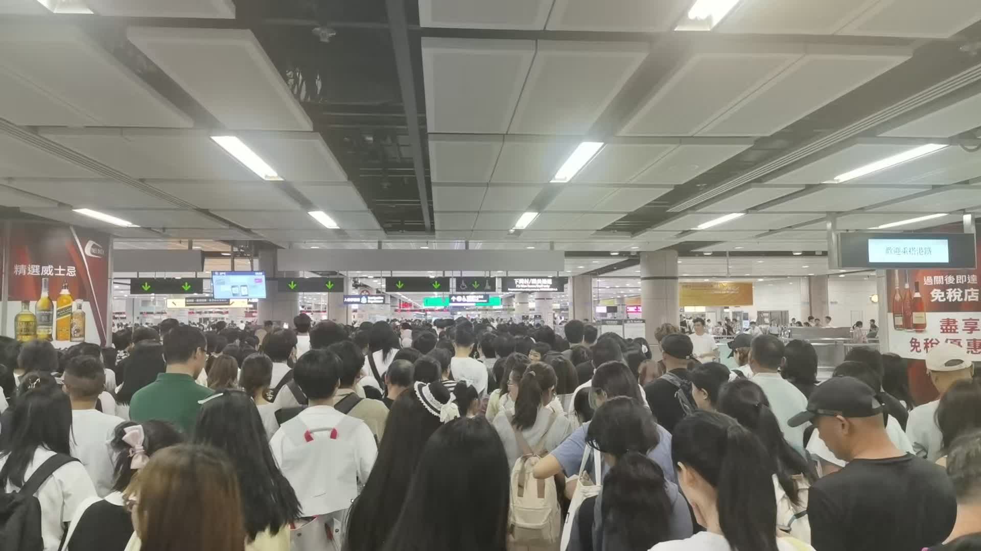 有旅客向《大公報》表示,昨日人數太多,其間見到電梯停運,而地鐵入閘機亦疑似出現故障,現場需要分批安排旅客上地鐵。