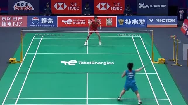 接下來的男單比賽中,石宇奇手感火熱,以21-8、21-16橫掃奈良岡功大,為中國隊再拿一分。
