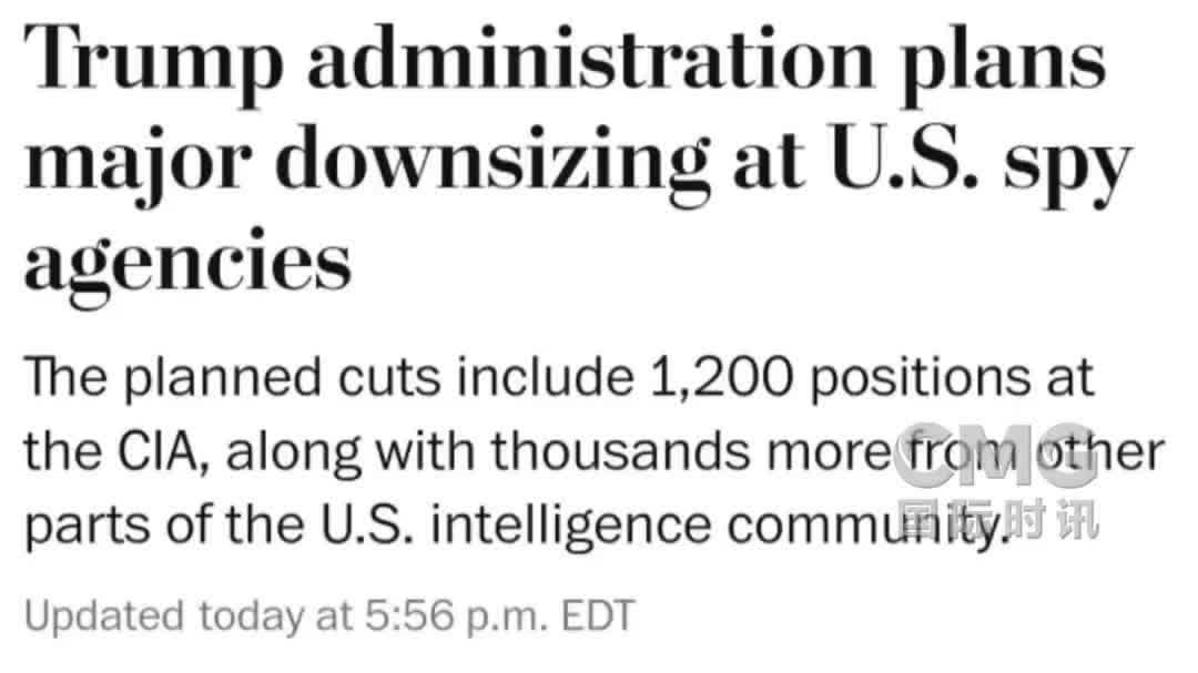 據CCTV國際時訊報道,當地時間5月2日,據美國《華盛頓郵報》援引知情人士消息報道,特朗普政府計劃大幅裁減美國情報機構規模。美國中央情報局(CIA)計劃裁員1200人,美國其他情報部門也將裁員數千人。今年2月4日,美國中央情報局曾向全體員工提出「買斷計劃」,稱此舉旨在使該機構與美國總統特朗普的優先事項保持一致。