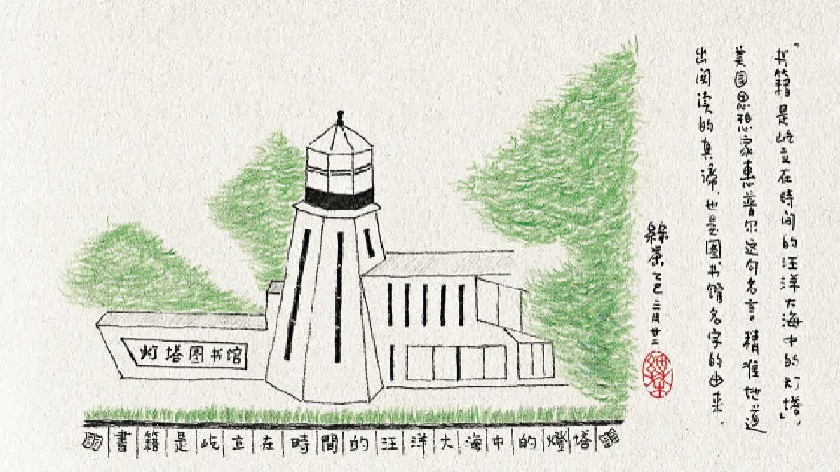 美國惠普爾的名言「書籍是屹立在時間的汪洋大海中的燈塔」正是這座圖書館名字的由來。圖書館共有三層,每層都各有妙處。一樓閱讀區開闊又簡約,寬敞通透,沒有一絲局促感;沿着樓梯上到二樓,大片玻璃落地窗映入眼簾,窗外無垠的海景毫無保留地展現眼前;再上到三樓,書櫃間巧妙設置長條形玻璃觀景窗,抬眼便能將窗外美景盡收眼底。塔頂玻璃房裏,還擺放着高清天文望遠鏡。