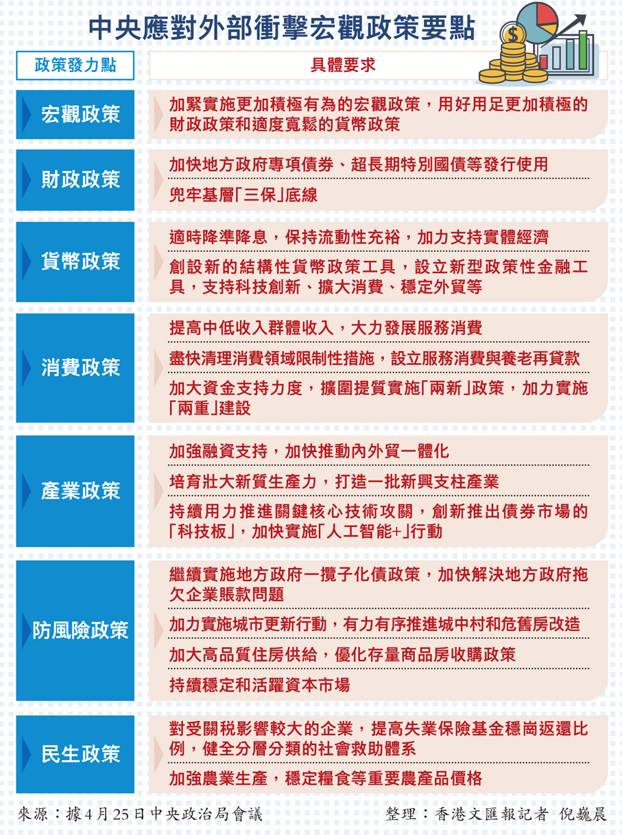 廣開首席產業研究院資深研究員馬泓指出,美對華超常規的關稅加徵力度,對中國出口帶來一定影響,初步估算,對華關稅每加徵10%,中國出口增速或下降2至2.5個百分點。在美對華關稅未能減免基準下,2025年中國出口或下滑8%至10%,對GDP增速構成1至1.5個百分點的拖累,「相關衝擊在加大投資和消費等政策刺激中可完全對沖,本季GDP同比或增長5.1%。」