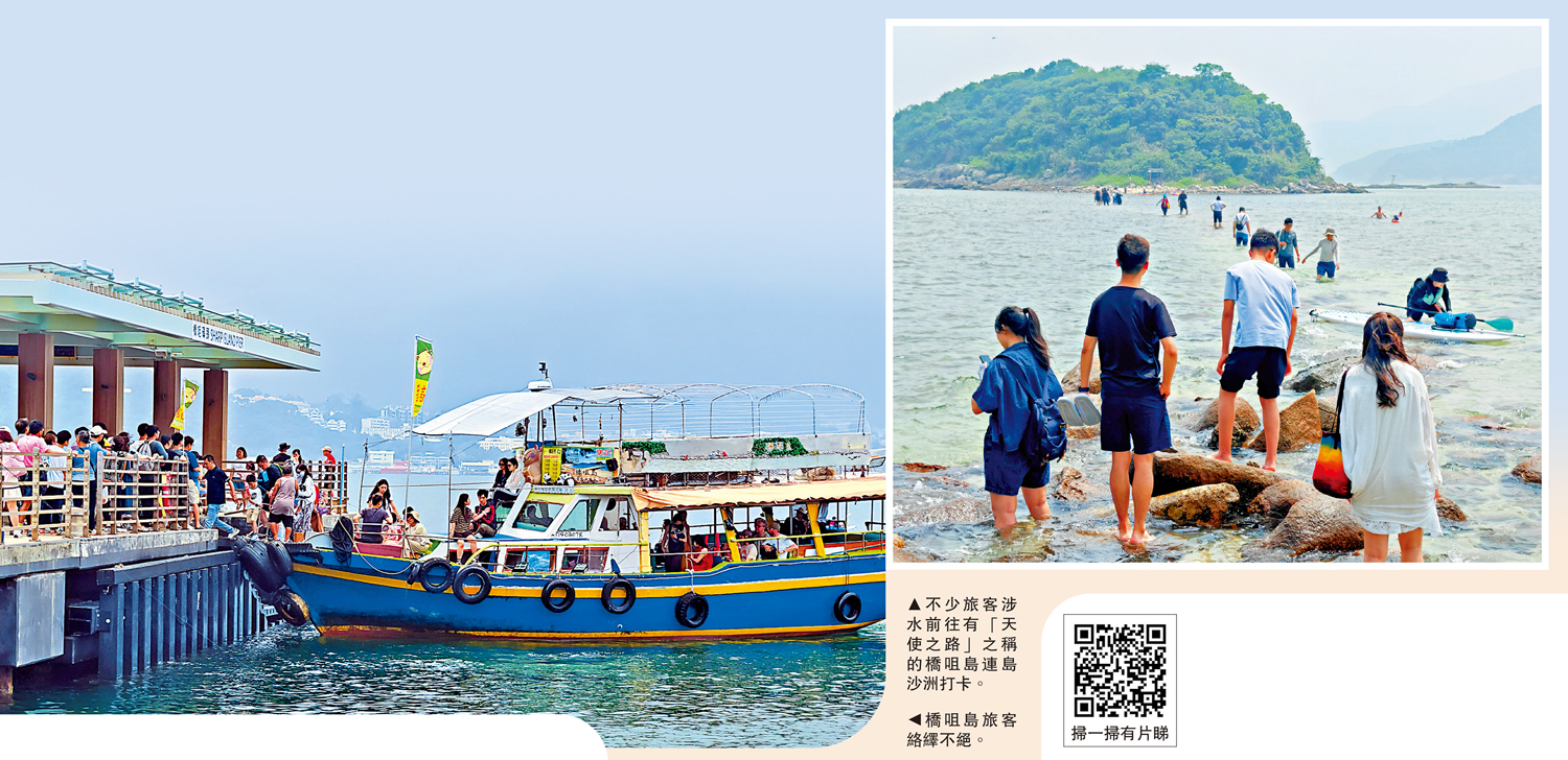 橋咀島有不少遊客涉水前往海中的連島沙洲打卡,「十年前已來過香港,以前只懂在市區玩和購物,今次看了不少介紹,特別來深度遊,特別喜愛西貢的離島和香港的美食」,在橋咀島玩浮潛的楊小姐,昨日對大公報記者說,這裏水清沙幼,很適合玩浮潛。她來自哈爾濱市,於4月30日抵港,逗留5日4夜,除了到西貢玩,也有隨處走下、玩下、食下,在港大約消費五、六千元,打算今日離港返家。她說「個人遊」很方便來港,明年有假期會再來深度遊。