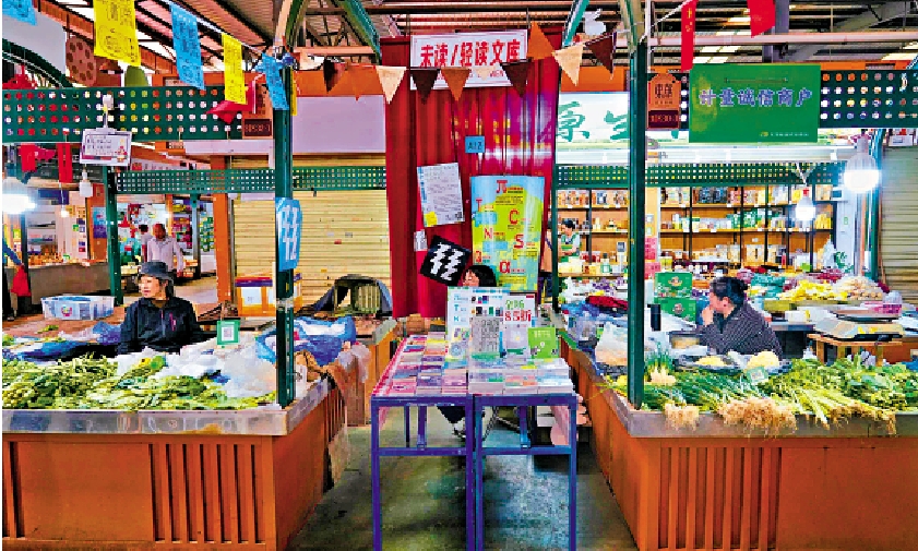 (大公報記者 譚旻煦)這個五一假期,雲南昆明直接把書店搬進菜市場。6000平方米的市集內,200餘個生鮮攤位與40餘家書店展位「混搭」陳列,市民遊客一手提着菜籃,一手捧着書卷,在煙火氣中解鎖「書菜市場」的文旅新體驗。