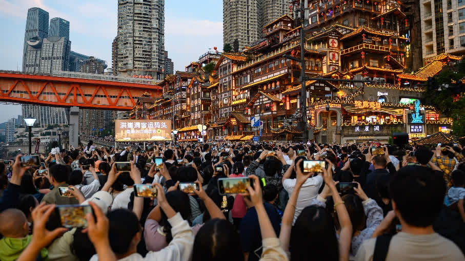 重慶洪崖洞夜景走紅後,每逢節假日千廝門嘉陵江大橋秒變遊客拍照的「步行街」。隔江相望的江北嘴江灘成為拍攝洪崖洞新晉打卡點,為方便遊客手機拍照充電,重慶直接將充電寶安排上了原本荒涼的江灘。觀音橋「我在重慶」打卡點火爆全國後,有遊客反映沿街路燈影響出片,重慶立馬拆除沿街路燈,讓遊客解鎖無遮擋打卡視角。
