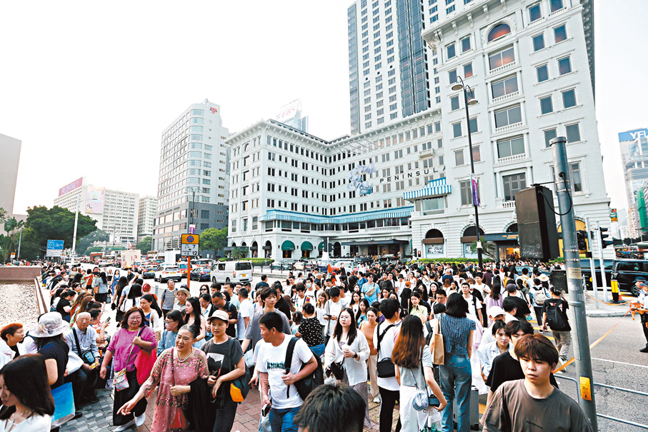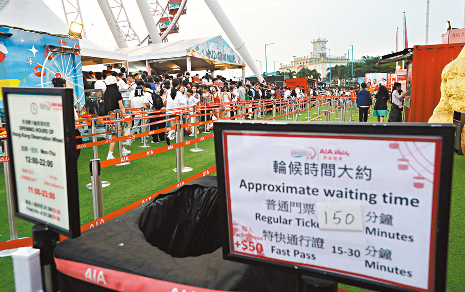 (香港文匯報記者 劉啟業)內地五一黃金周,香港各區連日來人山人海,考驗着各旅遊景點及交通工具的接待能力,山頂纜車站及昂坪360等旅客動輒苦等一兩小時。特區政府財政司司長陳茂波昨日指出,上周五(2日)訪港內地旅客創疫後單日新高,特區政府將積極擴充硬件設施,增加承載力和優化旅遊體驗。有資訊科技專家及旅遊業界總結經驗時指出,硬件始終受空間限制,要提升旅遊體驗必須善用科技,例如利用手機程式遠程排隊、預約入場,省卻旅客親身到場擠擁等候入場的情況,建議推出電子排隊系統,打造智慧觀光旅遊。